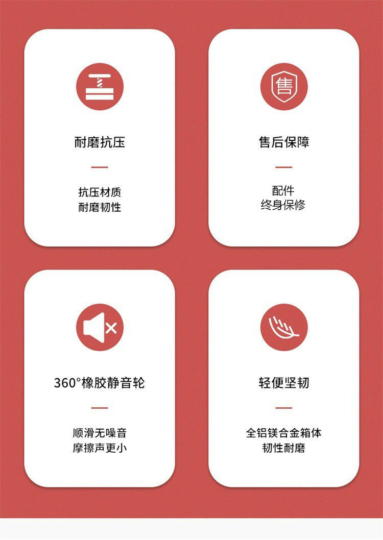 1.本店所售的拉杆箱,零配件终身保修,(轮子,拉杆,锁,把手等)
