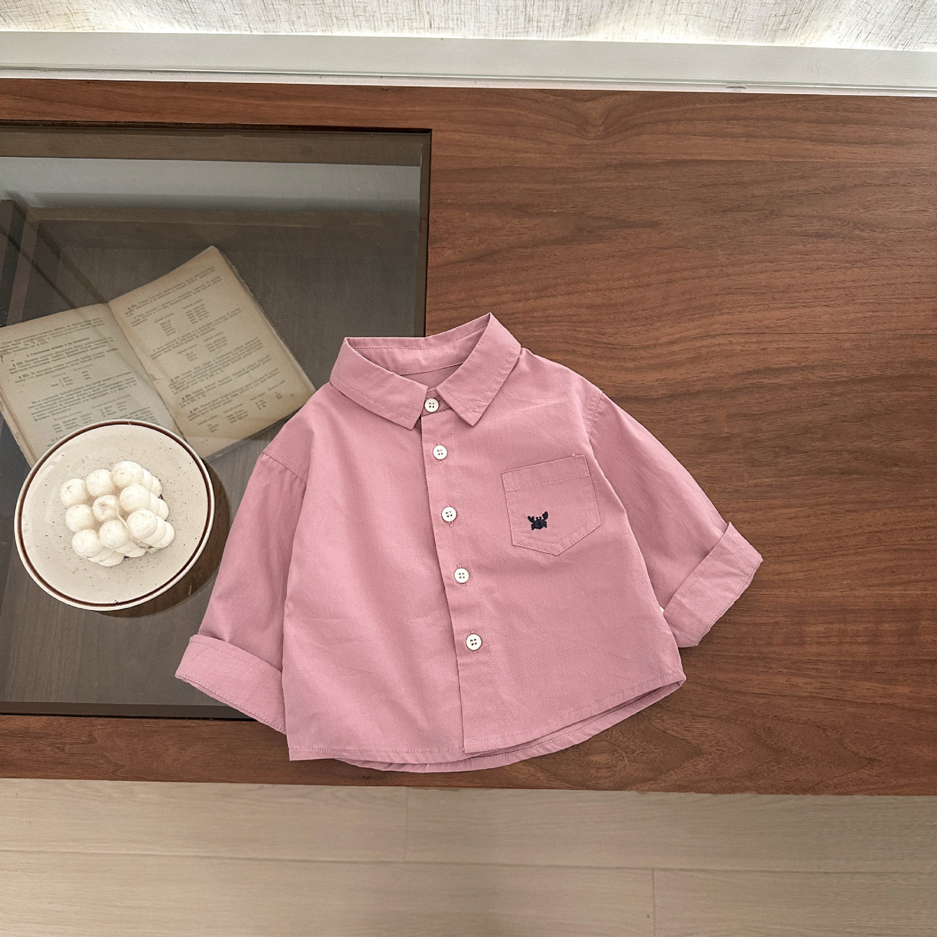 아동 셔츠 가을 2025 새로운 한국 스타일 잘 생긴 아기 스타일 자수 셔츠 아기 캐주얼 다목적 탑