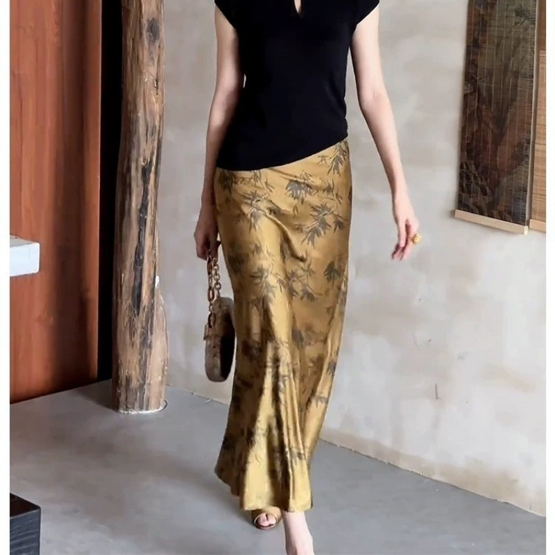 여성을위한 새로운 중국 스타일 국가 스타일 블랙 탑 스커트 투피스 양복 스커트 2025 여름 새로운 기질 디자인스토어 가기
