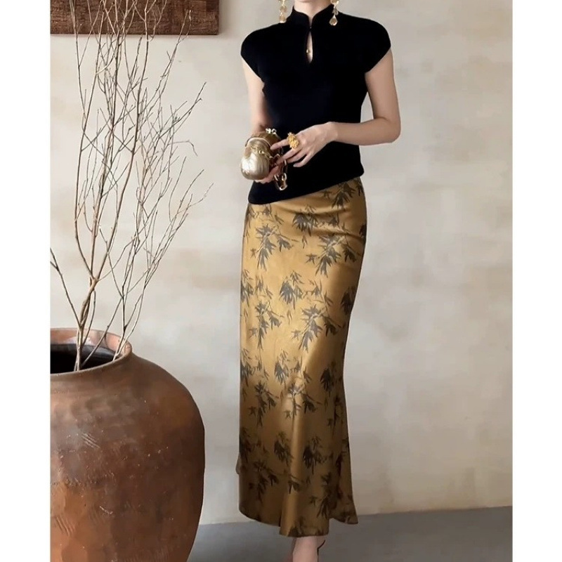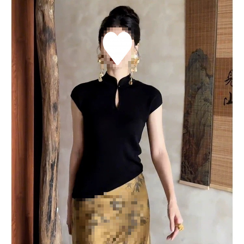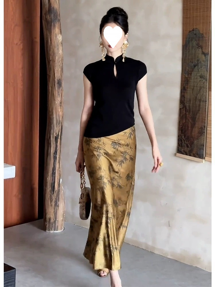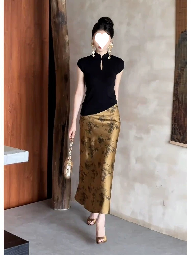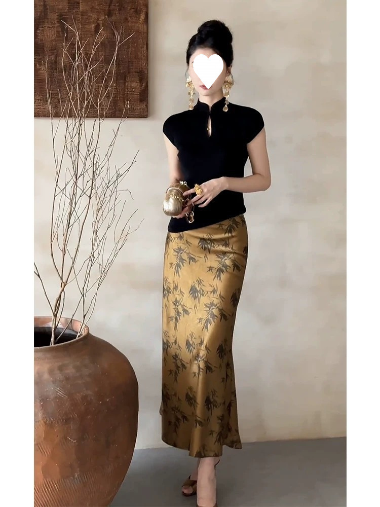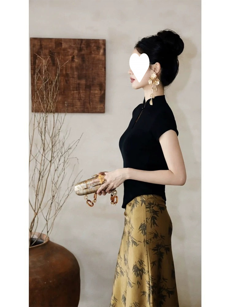 여성을위한 새로운 중국 스타일 국가 스타일 블랙 탑 스커트 투피스 양복 스커트 2025 여름 새로운 기질 디자인