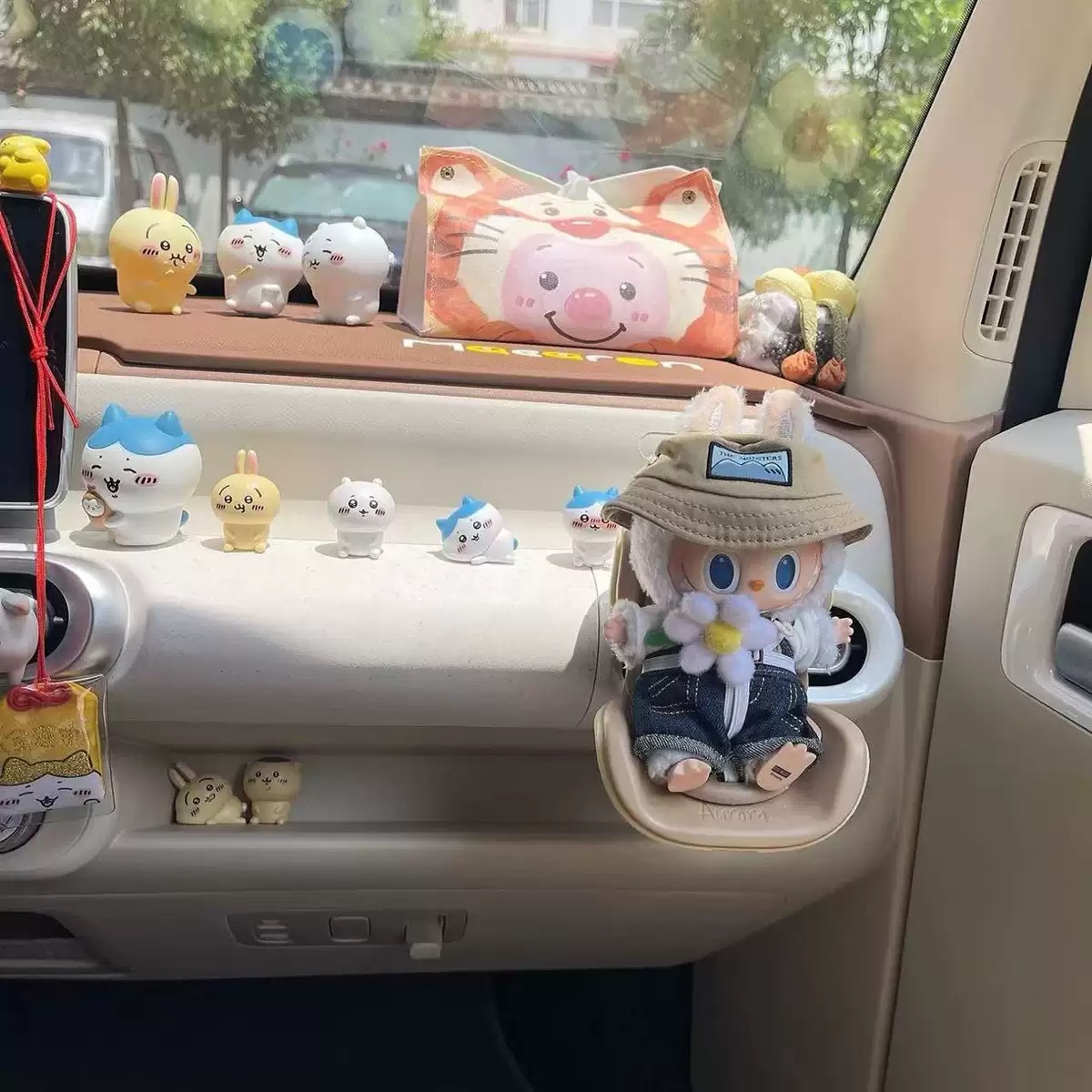 Labubu 안전 시트 labubu 자동차 좌석 공기 배출구 장식품 인형 장식 자동차 인테리어 장식품스토어 가기