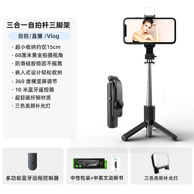 • 【Q20】알루미늄 합금 폴 + 필 라이트 + 용골 삼각대 + 블루투스 리모콘