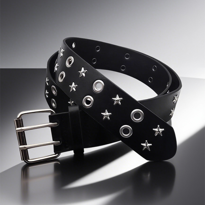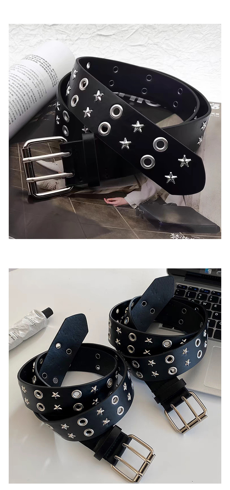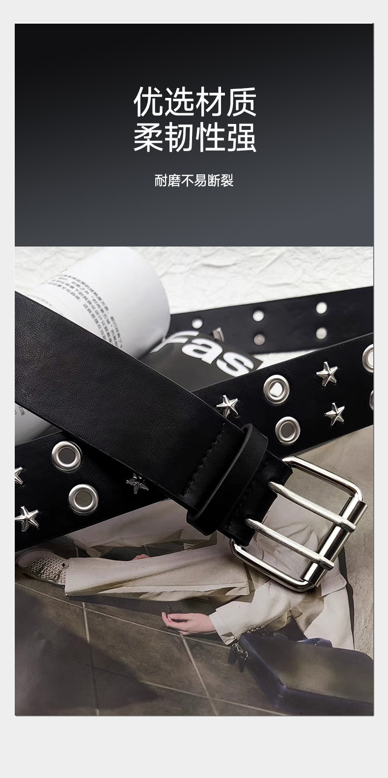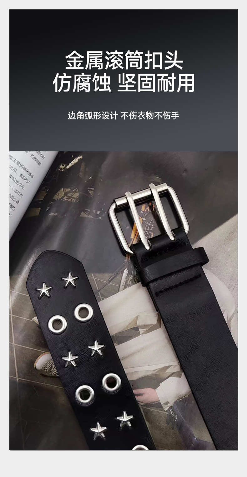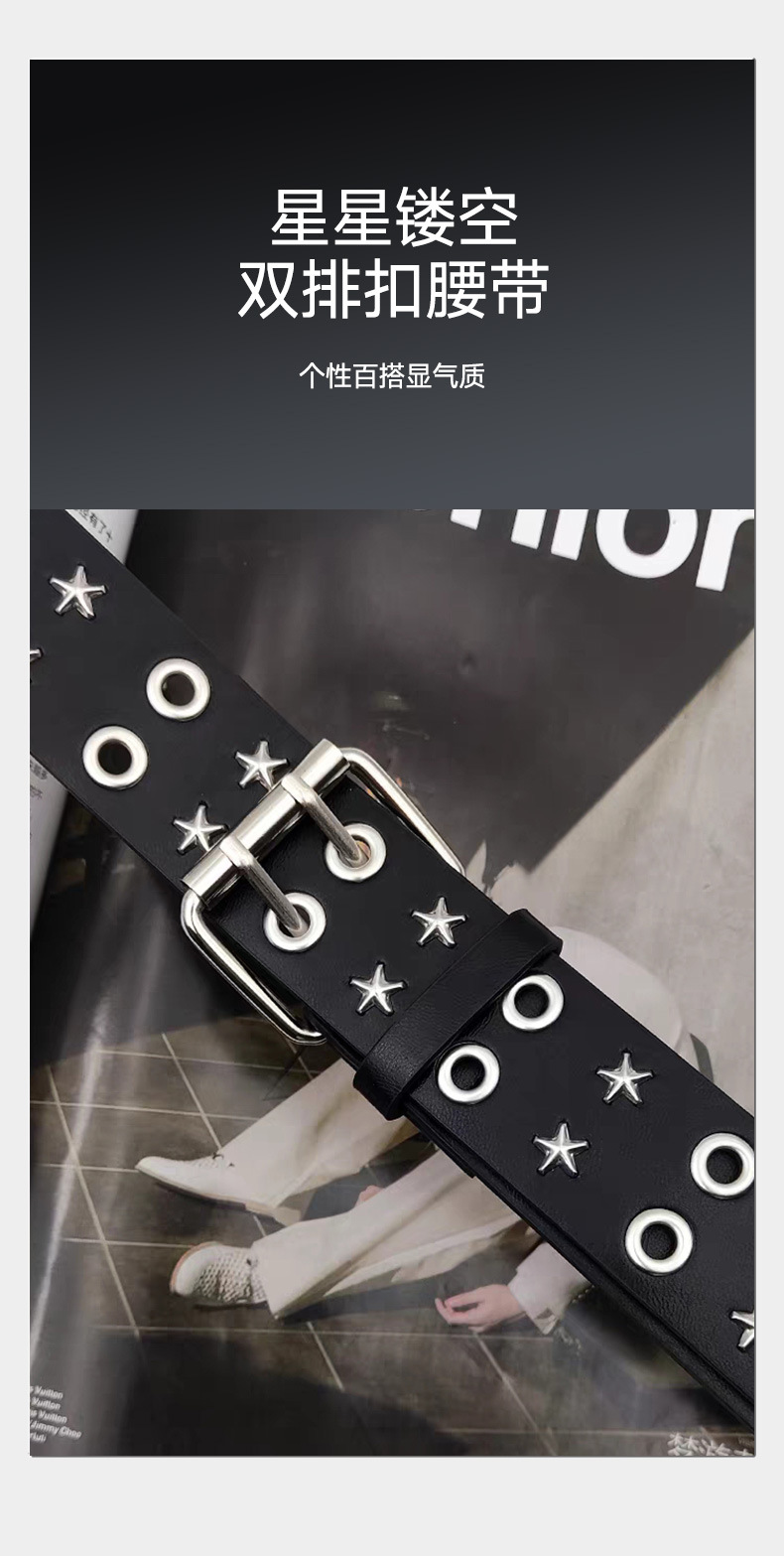 여성용 크로스보더 에어아이 벨트, 리벳 장식, 다용도 여성 가죽 벨트, 펑크 스타일, 더블 핀 버클, 청바지용, 개성 있는 엠보싱 패턴스토어 가기