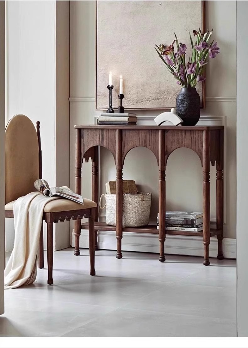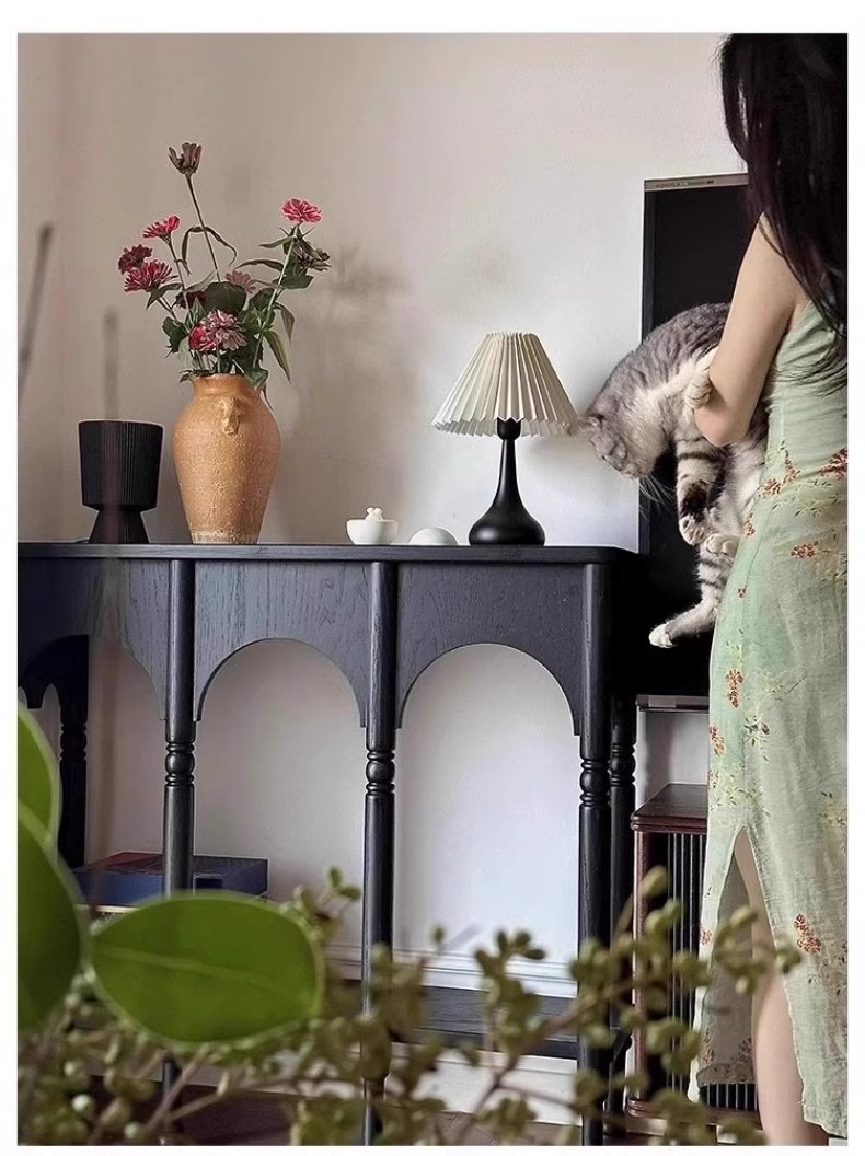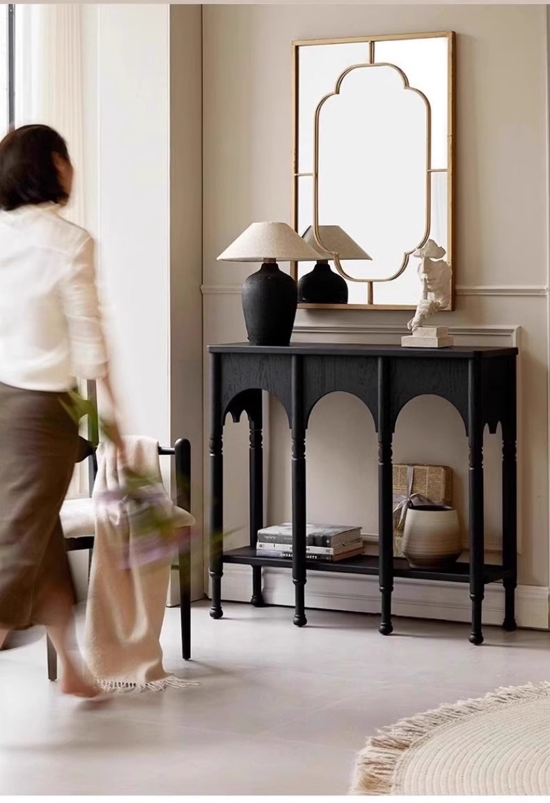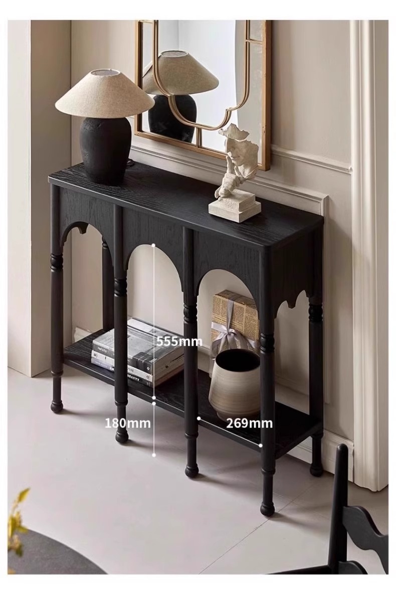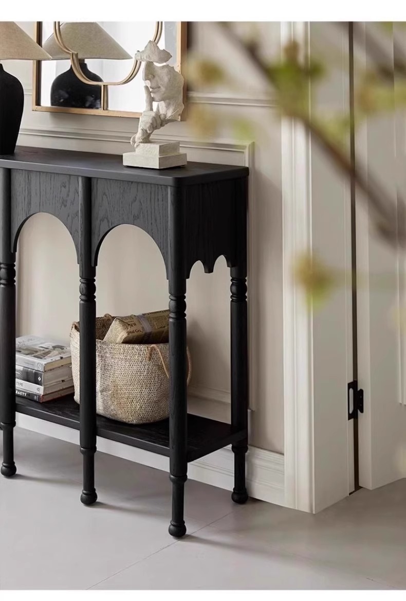 북유럽 복고풍 입구 캐비닛 단단한 나무 거실 파티션 캐비닛 입구 테이블 소파 차단 캐비닛 검은 통로 캐비닛