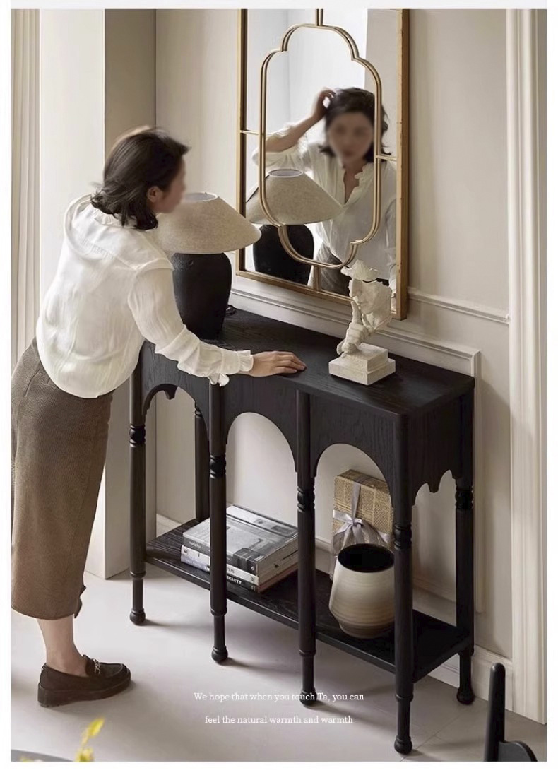 북유럽 복고풍 입구 캐비닛 단단한 나무 거실 파티션 캐비닛 입구 테이블 소파 차단 캐비닛 검은 통로 캐비닛스토어 가기