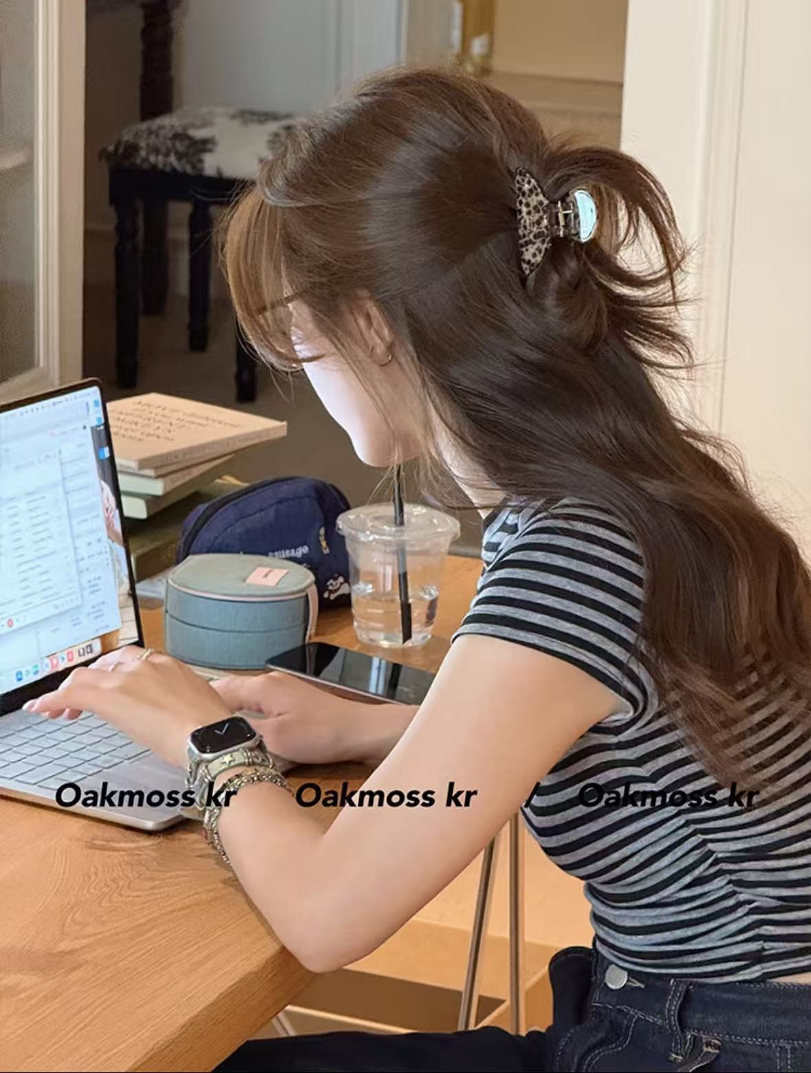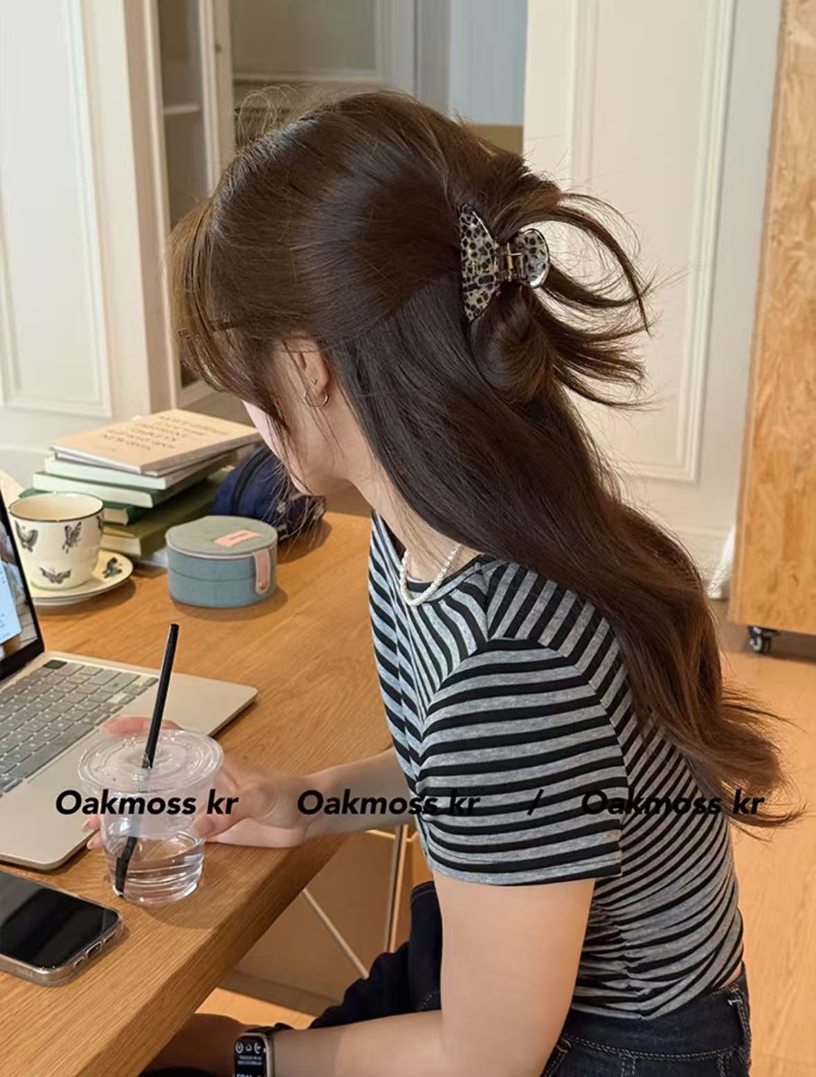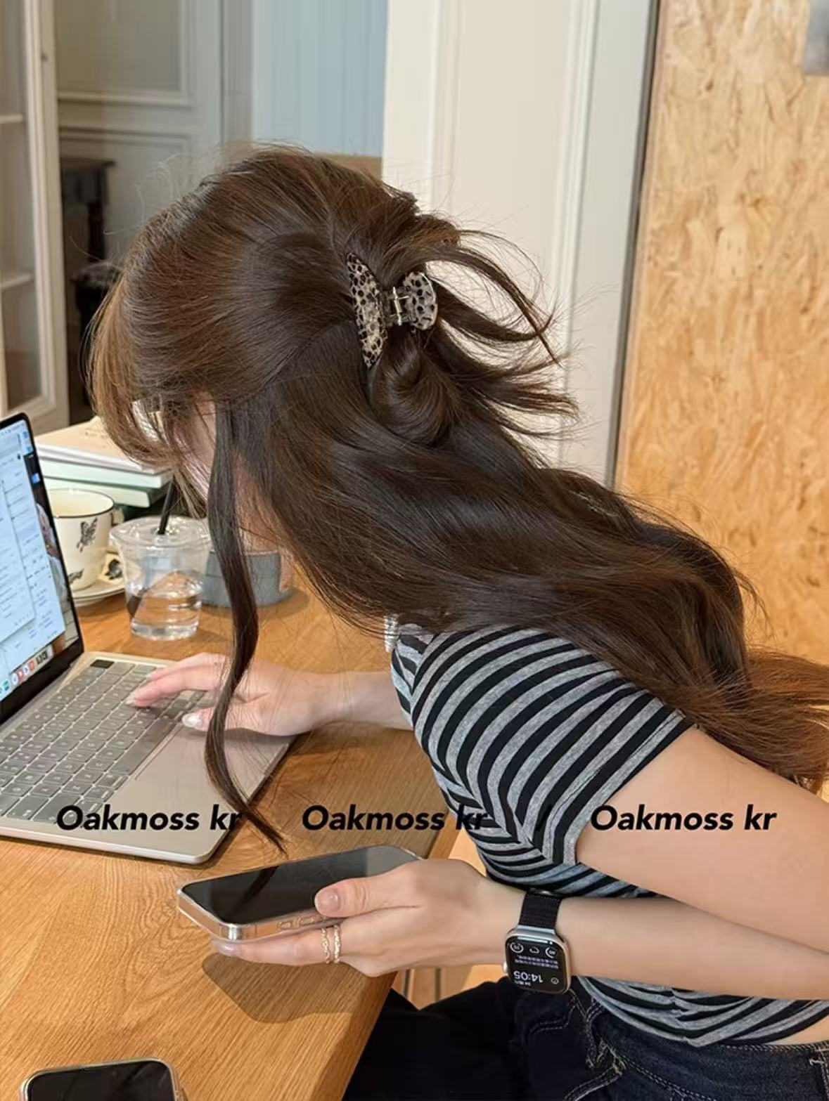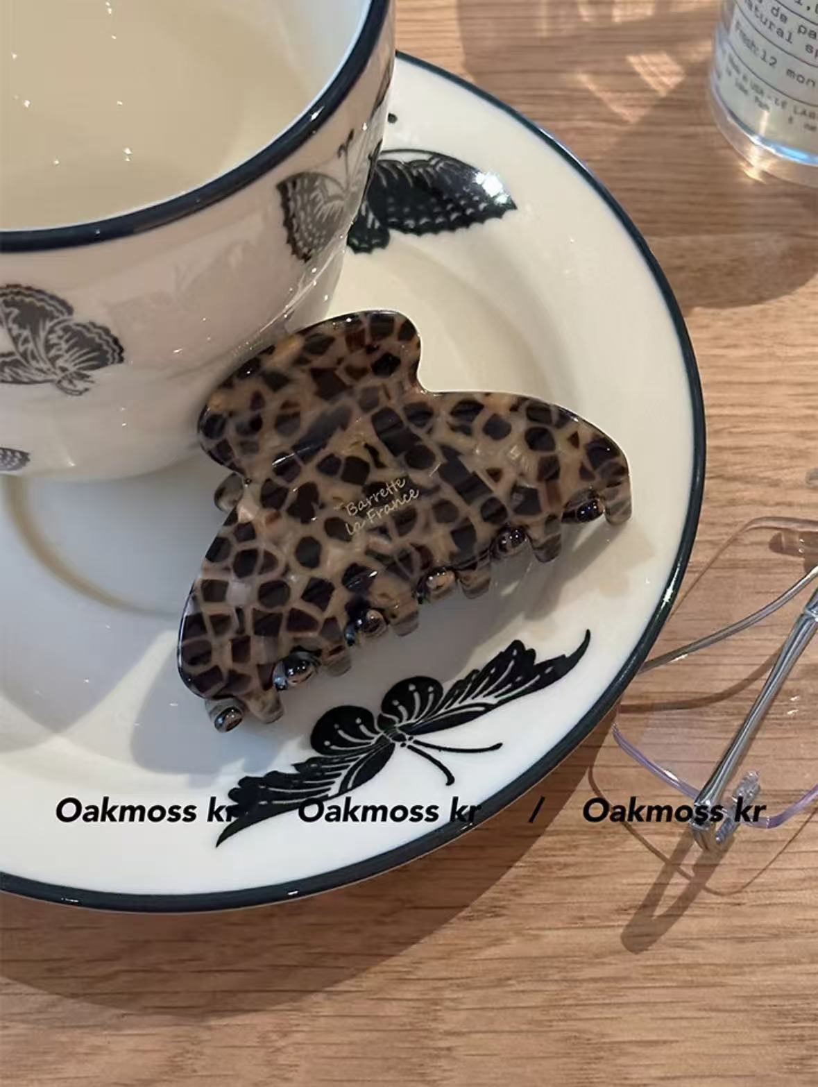 올드 머니 스타일 프렌치 하이엔드 레오파드 프린트 아세테이트 클립, 복고풍 스타일의 미디엄 샤크 클립, 머리핀, 머리핀스토어 가기