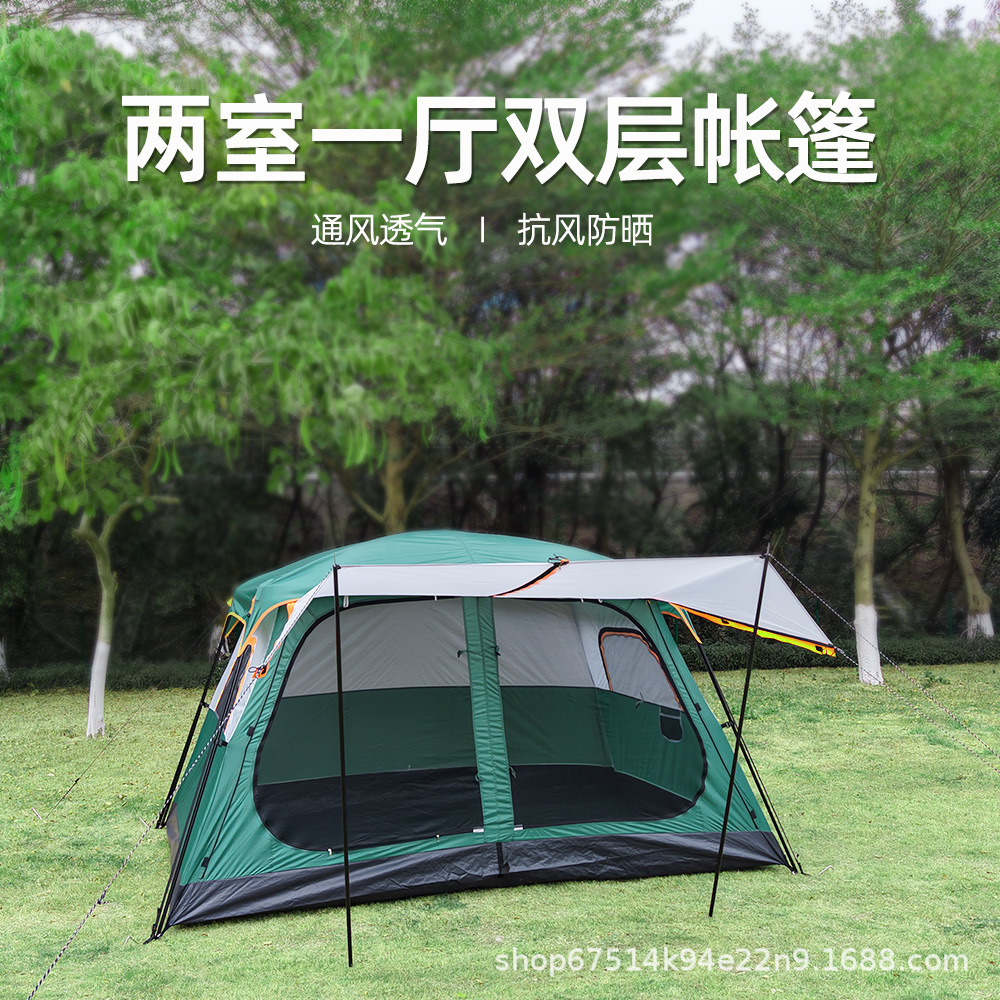 두꺼운 캠핑 텐트 휴대용 방수 야외 텐트 2실 1거실 더블 레이어 캠핑 접이식 캠핑 장비 096스토어 가기