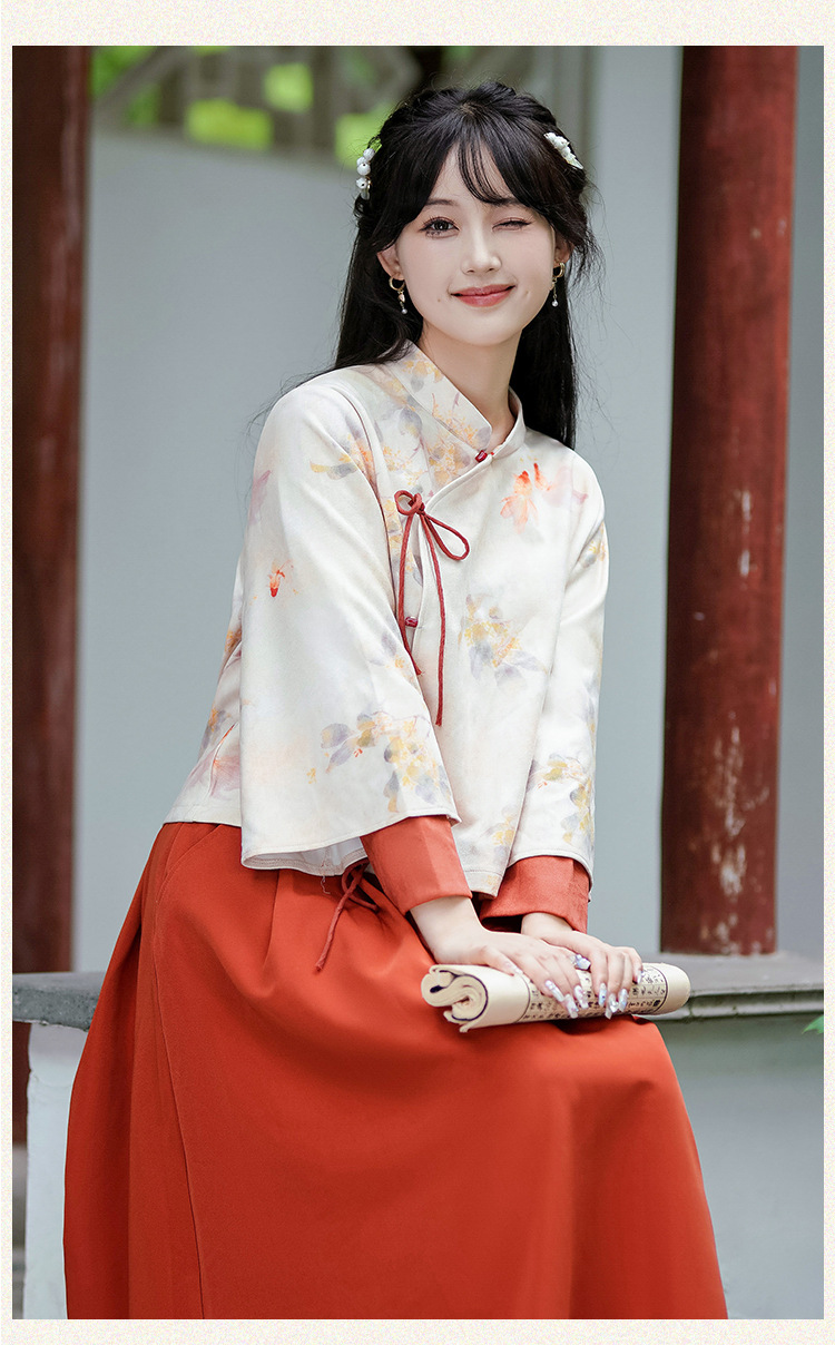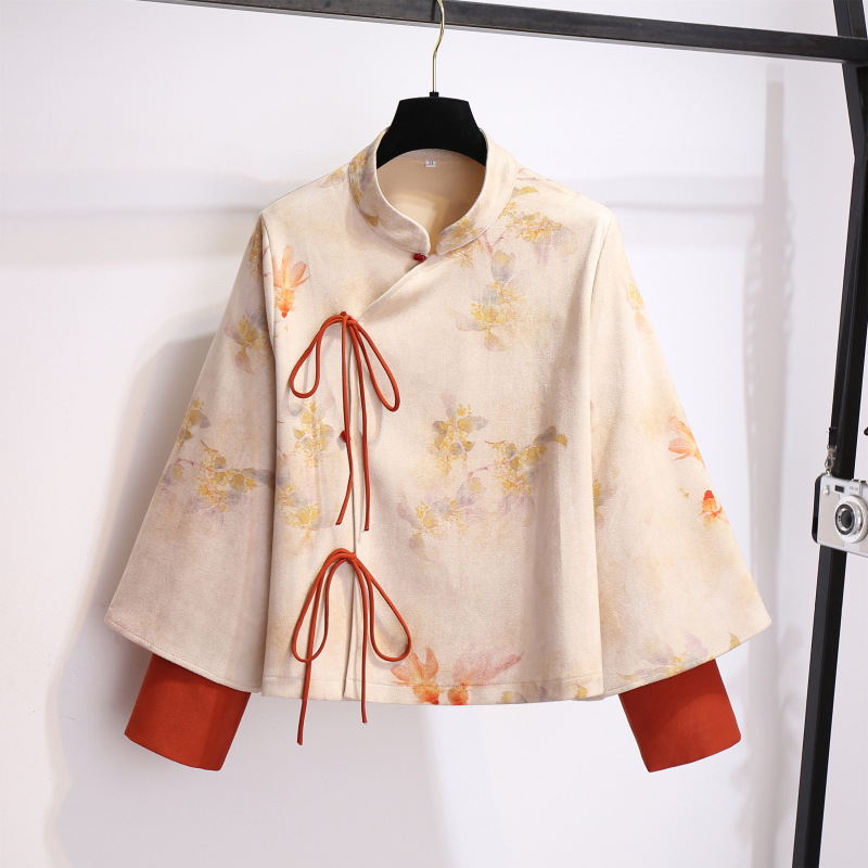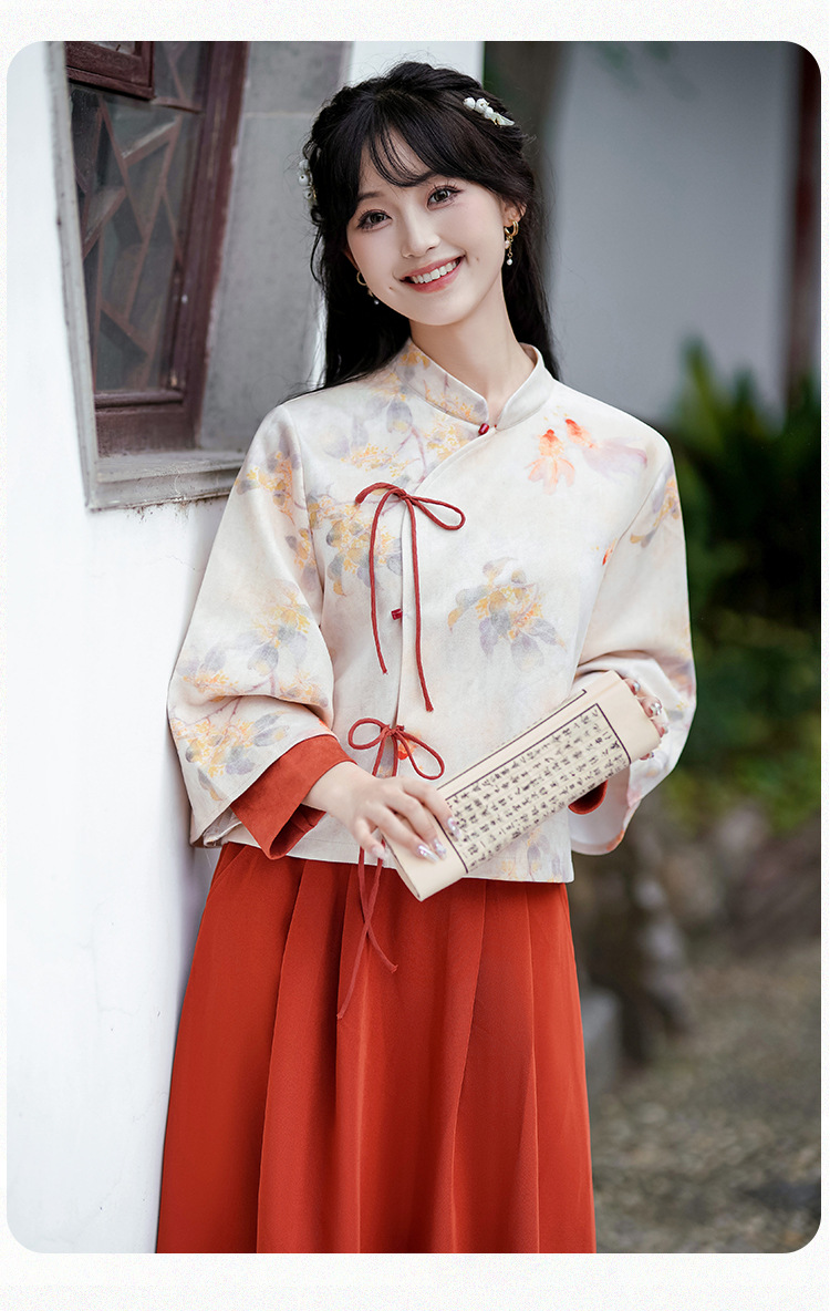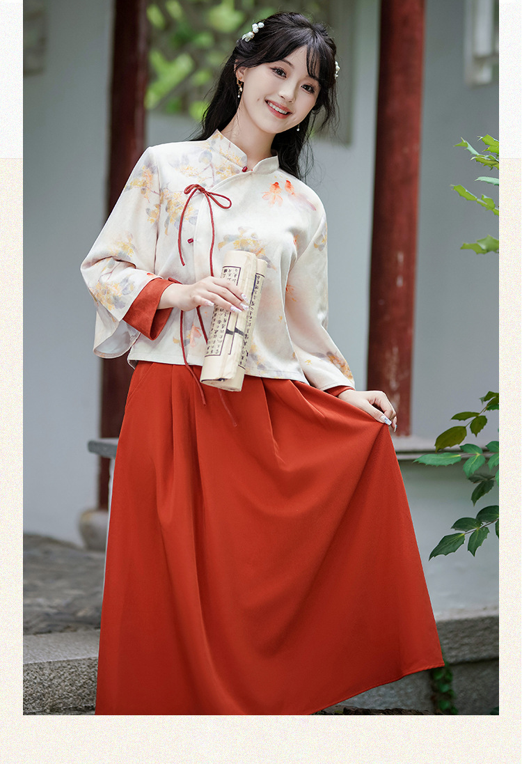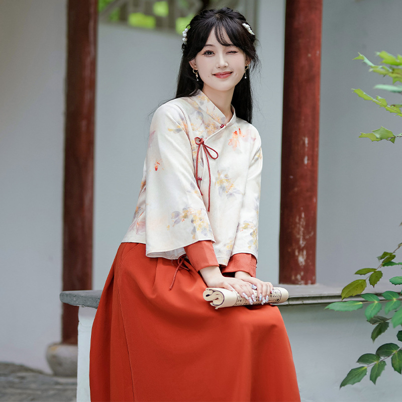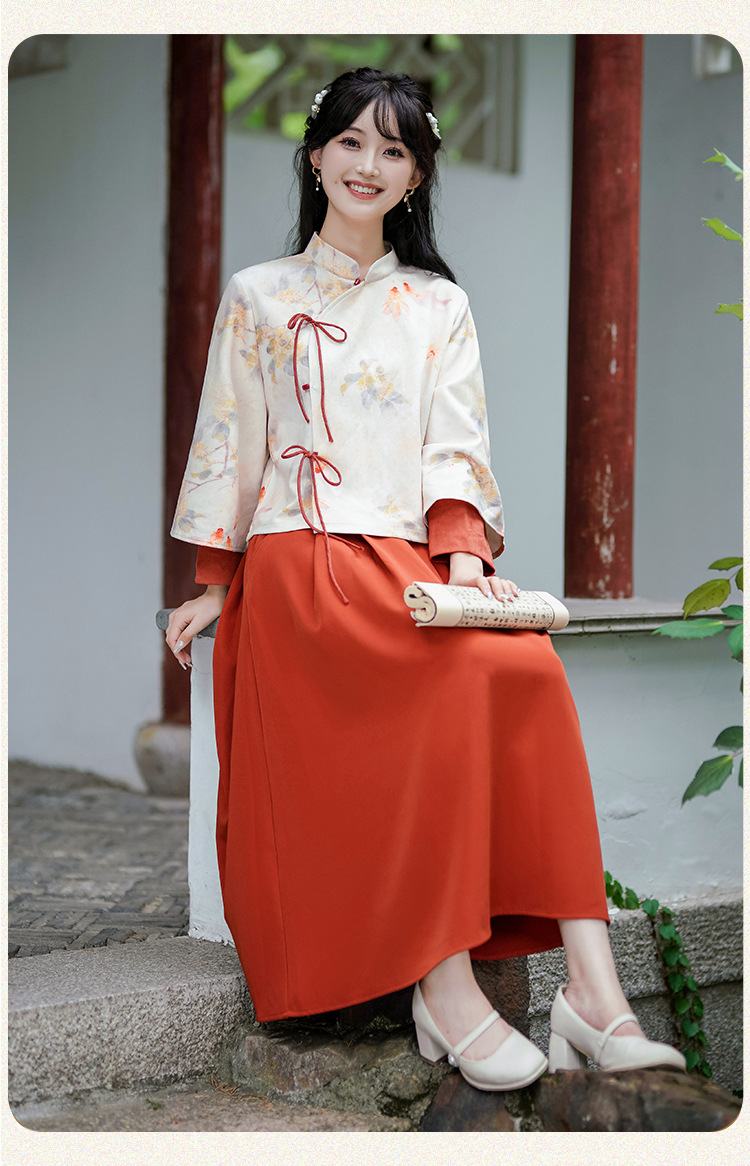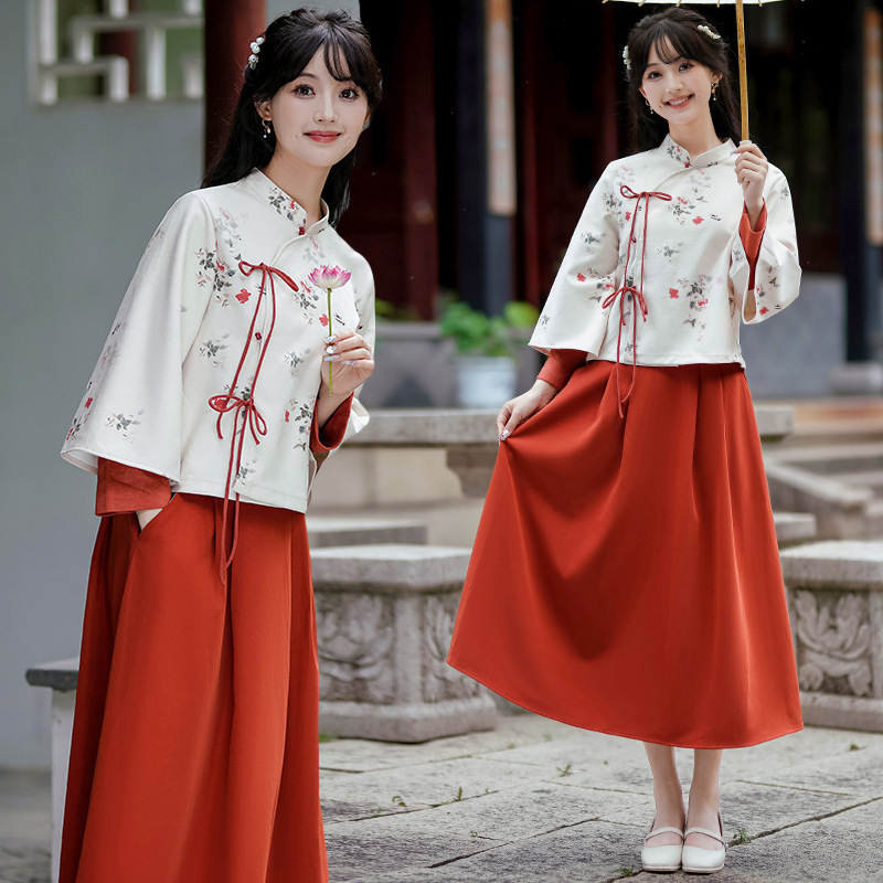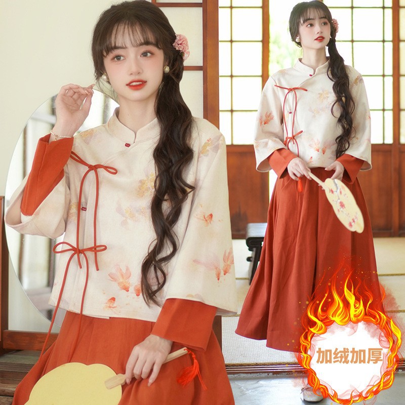 새로운 중국 스타일 개선된 소녀 치파오 탑 가을, 겨울 2024 새로운 작은 복고풍 중국 스타일 드레스 투피스 세트