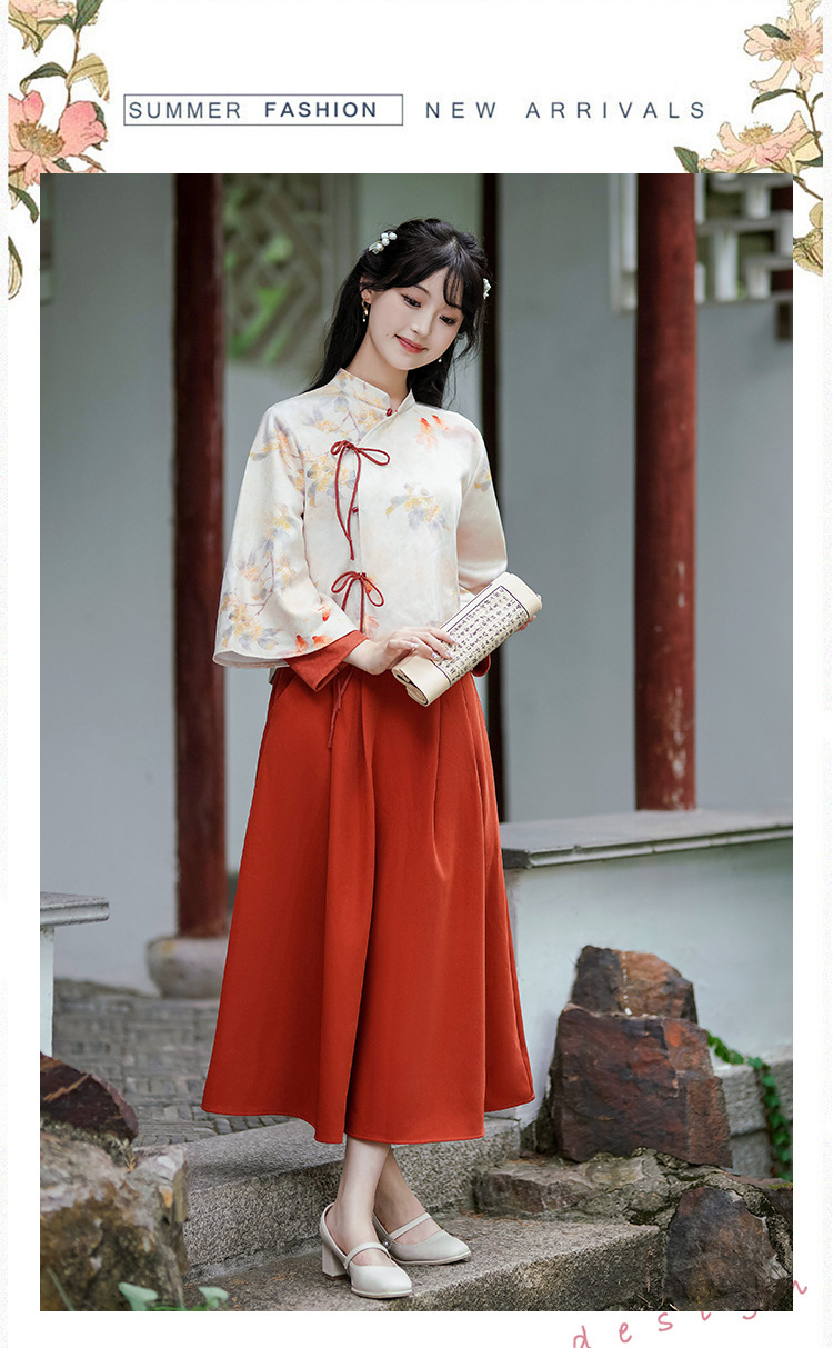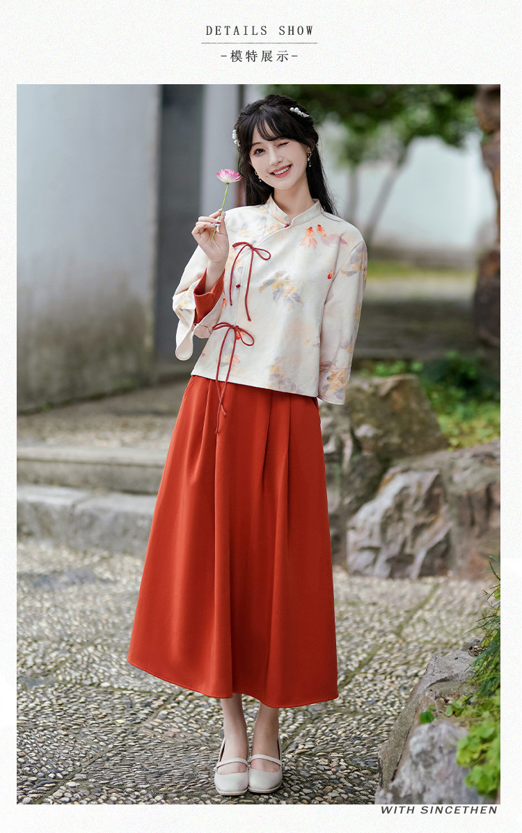 새로운 중국 스타일 개선된 소녀 치파오 탑 가을, 겨울 2024 새로운 작은 복고풍 중국 스타일 드레스 투피스 세트스토어 가기