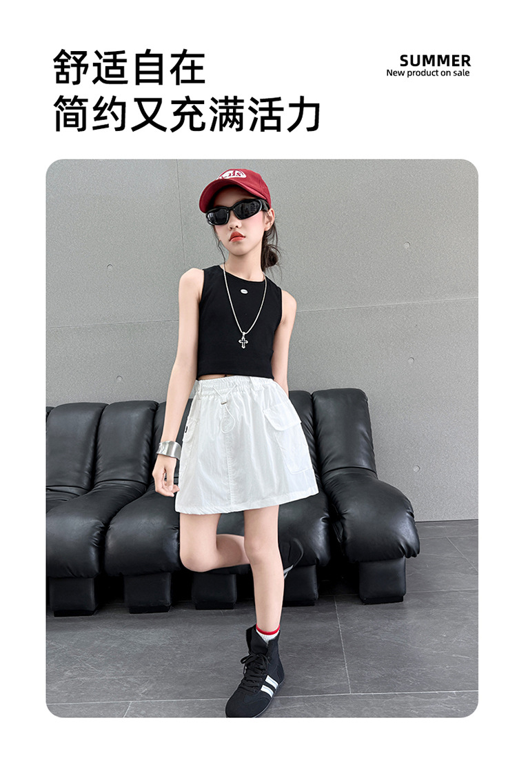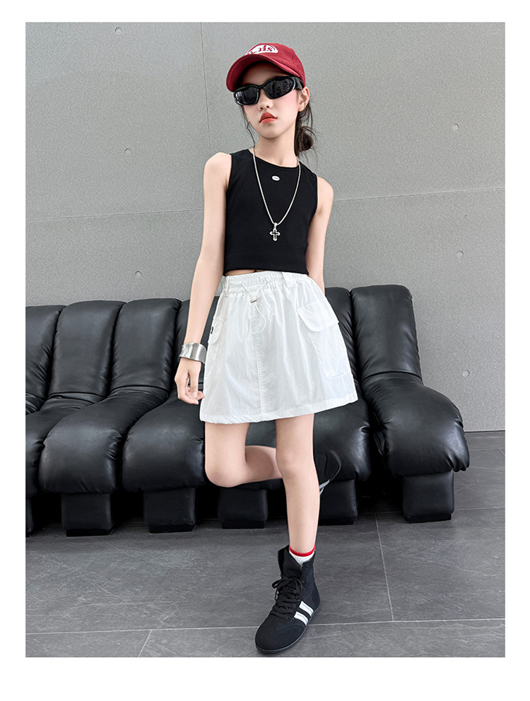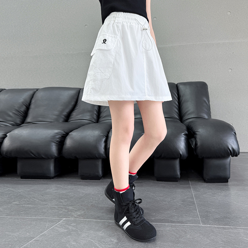 여아 작업복 스커트 속건성 스커트 2025 새로운 스타일 중대형 아동 패셔너블 스트리트 디자인 스커트 다용도 바지 스커트