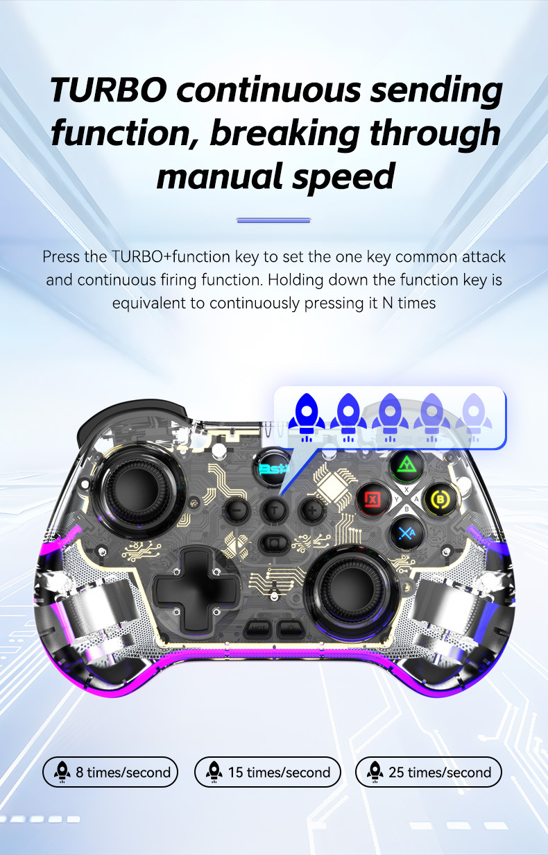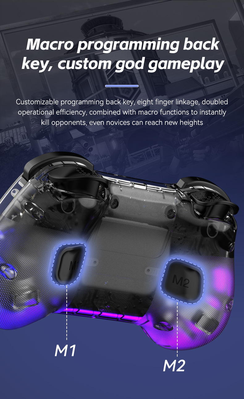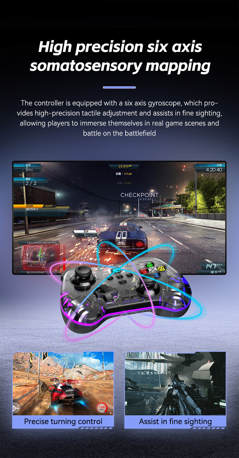 4.带宏编程背键、六轴体感陀螺仪、双震动马达可调节,TURBO一键连发。