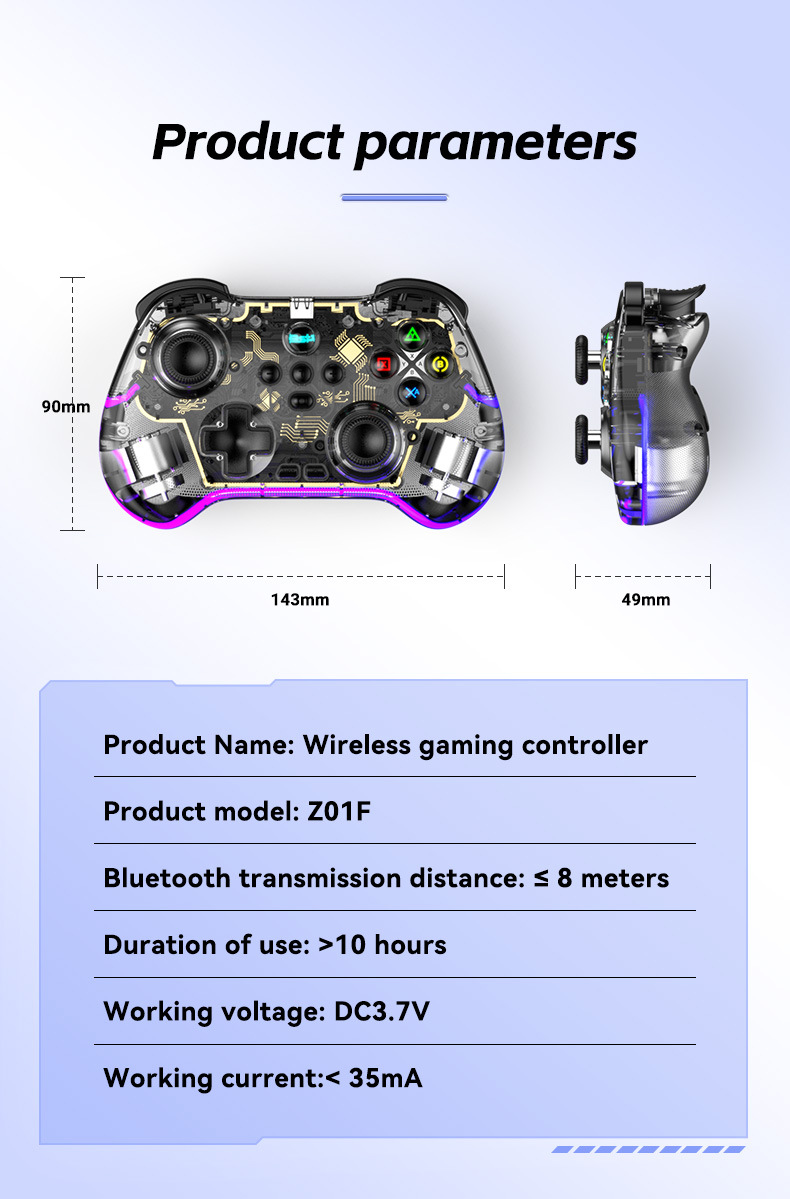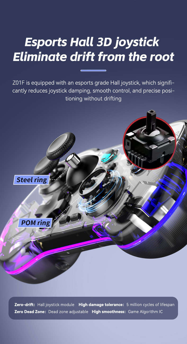 Multi Platform Compatibility: Z01F wireless game controller support bluetooth wireless direct connection: iPhone/iPad/Macbook/Android phone/Samsung Galaxy/Huawei/One Plus/TCL/oppo/motorola/Vivo /asus/tablet/PC/Nintendo Switch/Switch OLED/Switch Lite/Steam Deck. No key mapping, no need to jailbreak your phone, you can play directly after connecting Bluetooth successfully