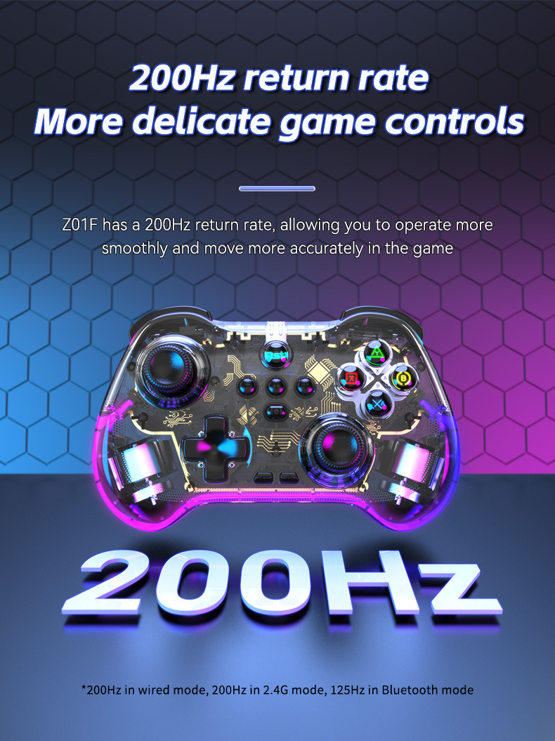 9.回报率:有线模式下200Hz,2.4G模式下200Hz,蓝牙模式下125Hz