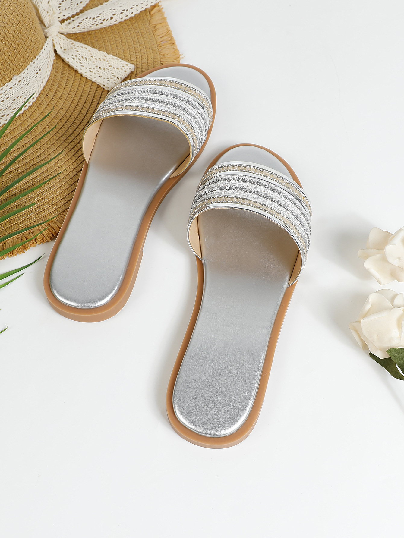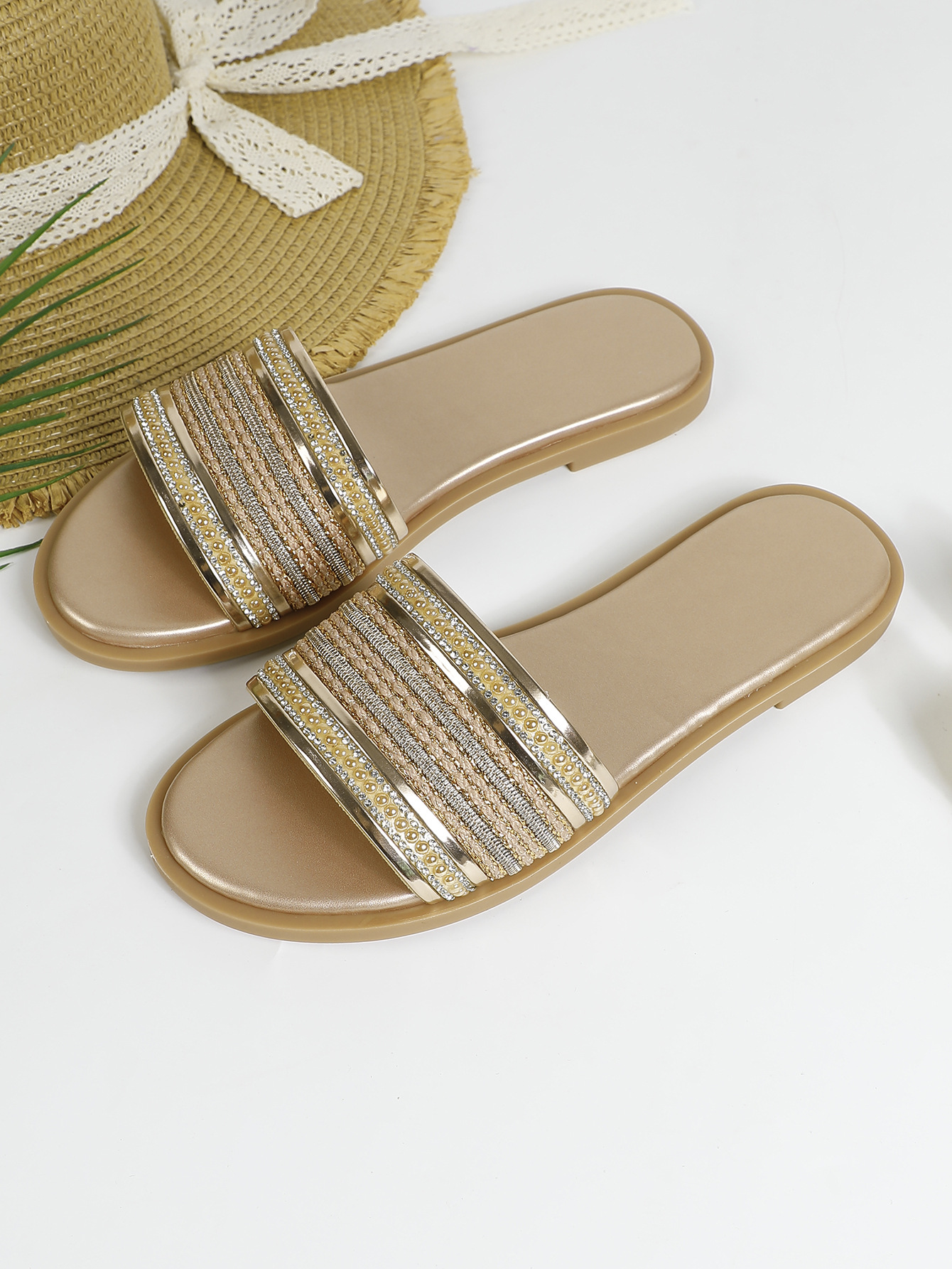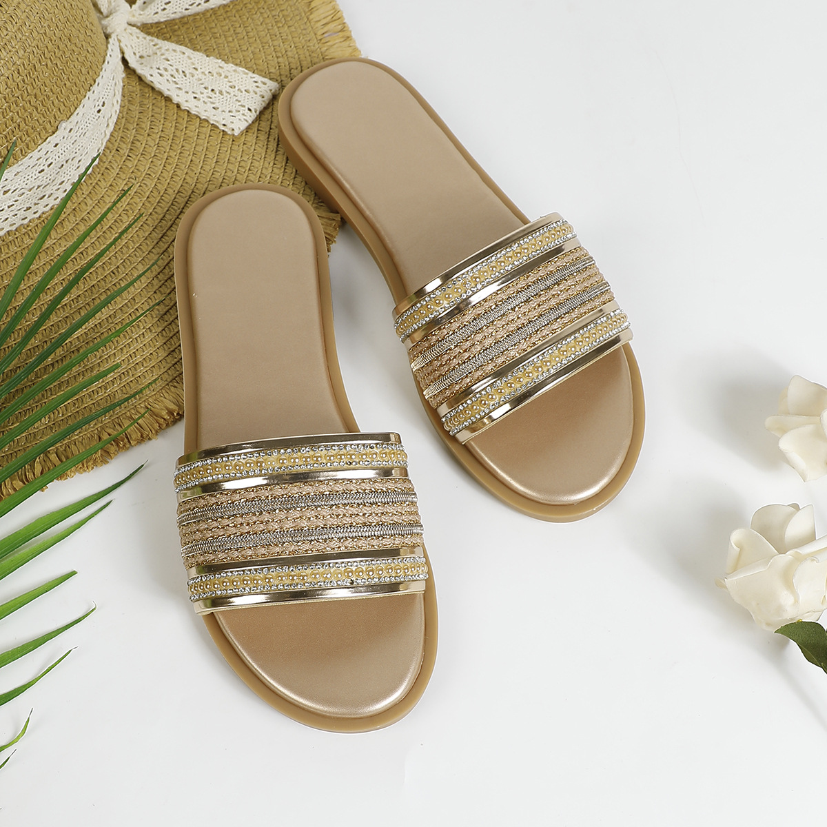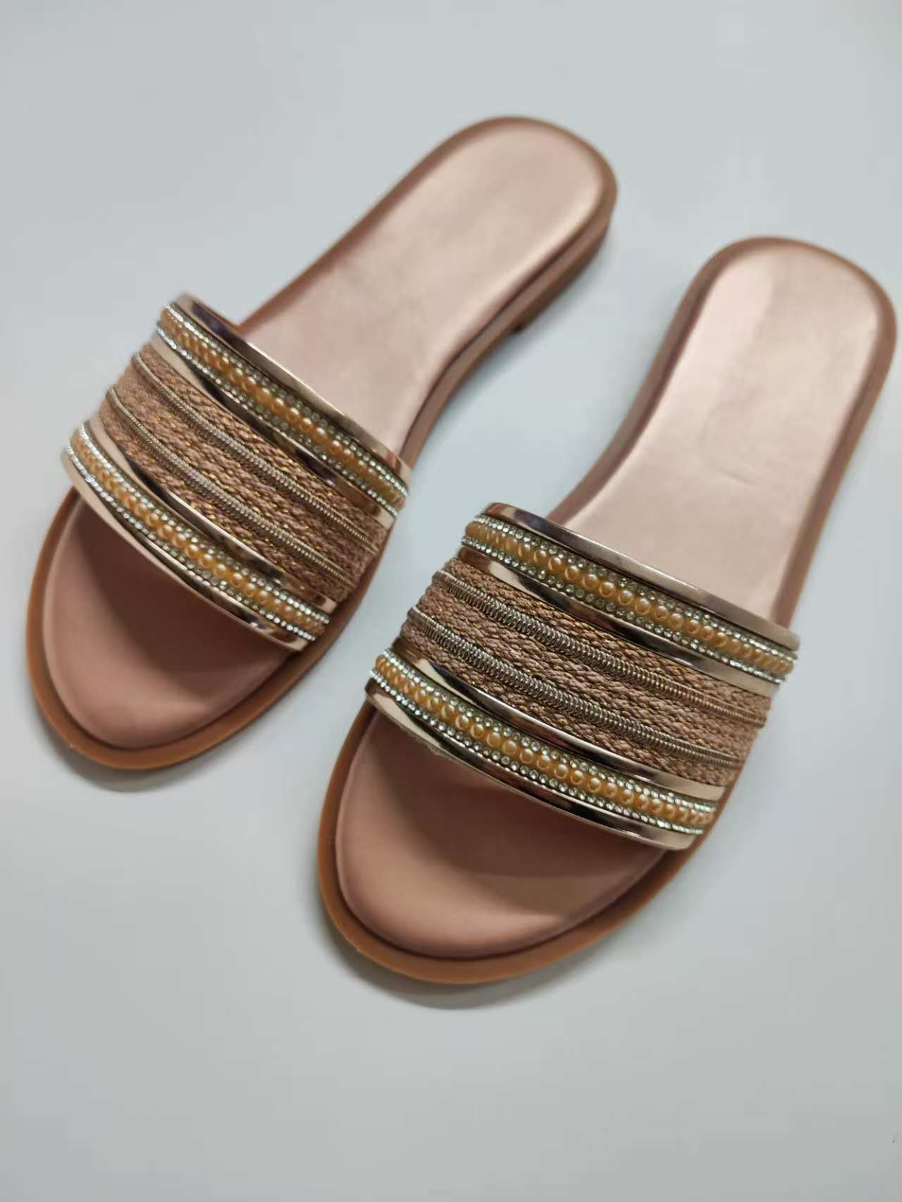 대외 무역용 대형 플랫 바닥 휴가용 비치 슬리퍼 여성용 신발 외출용 2025 여름 레트로 스타일 샌들