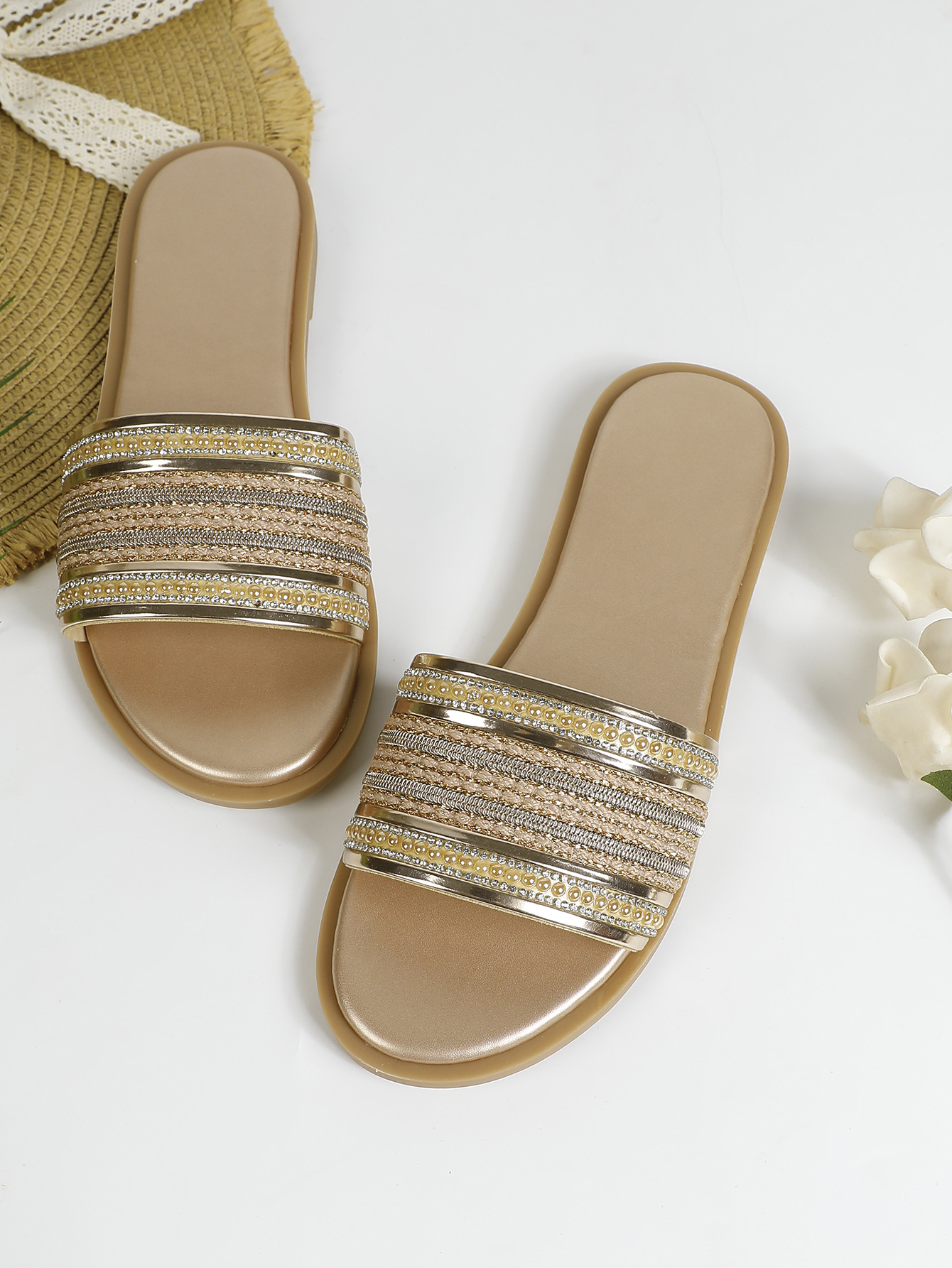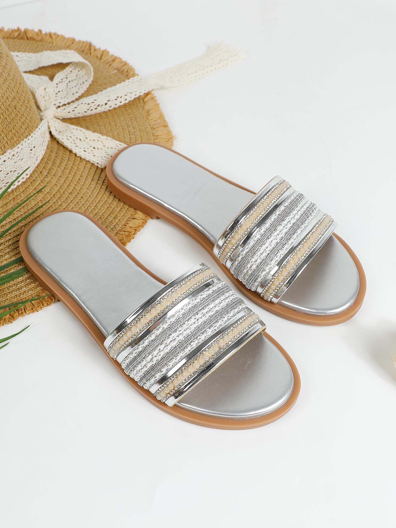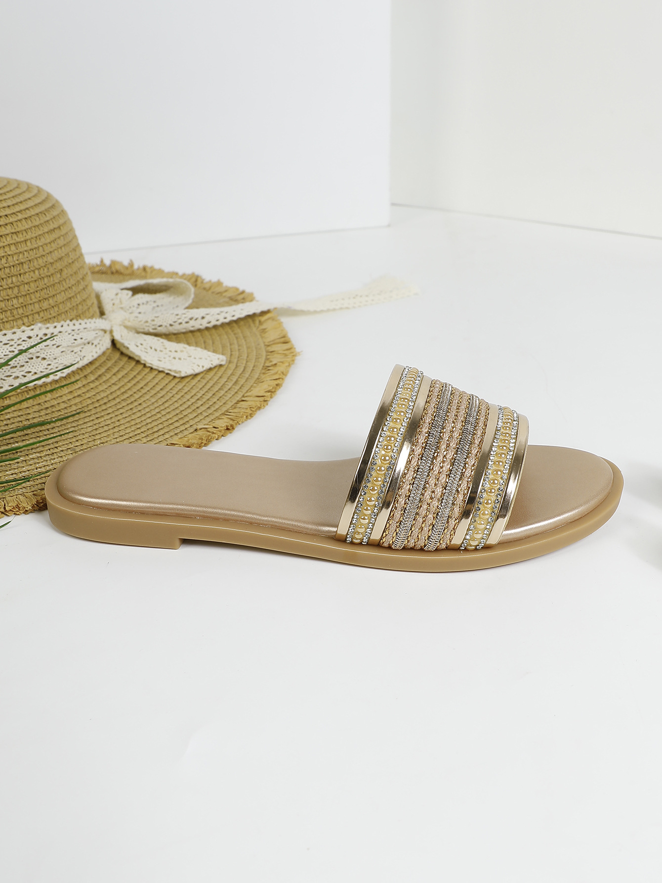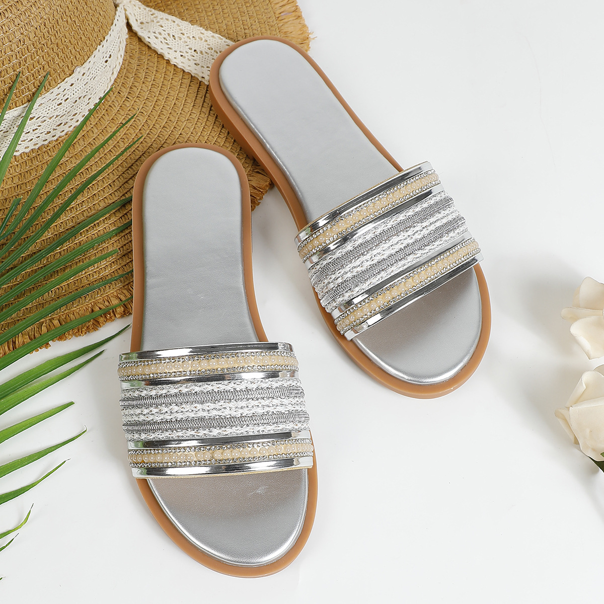 대외 무역용 대형 플랫 바닥 휴가용 비치 슬리퍼 여성용 신발 외출용 2025 여름 레트로 스타일 샌들