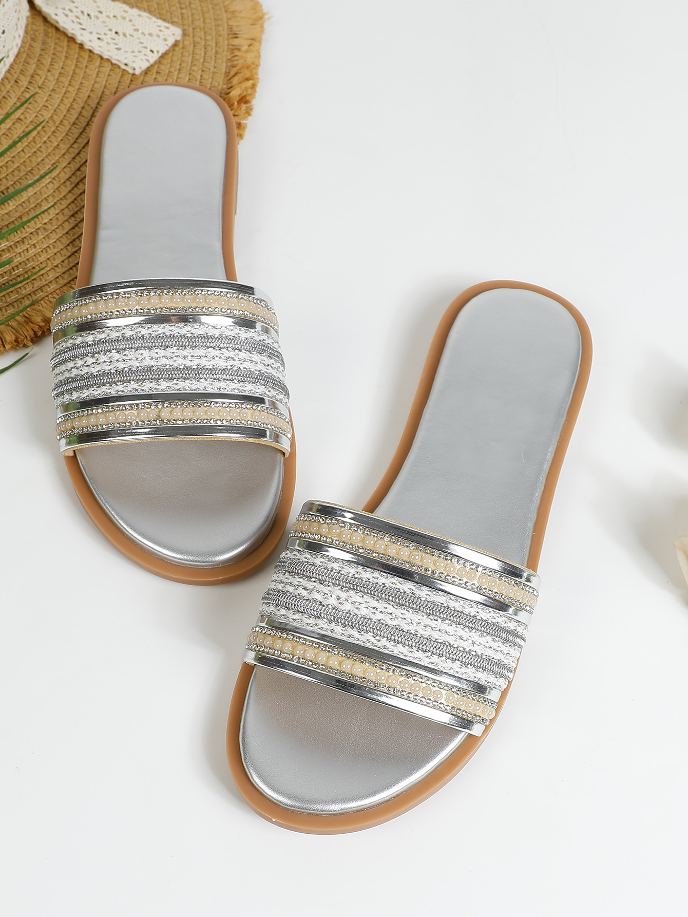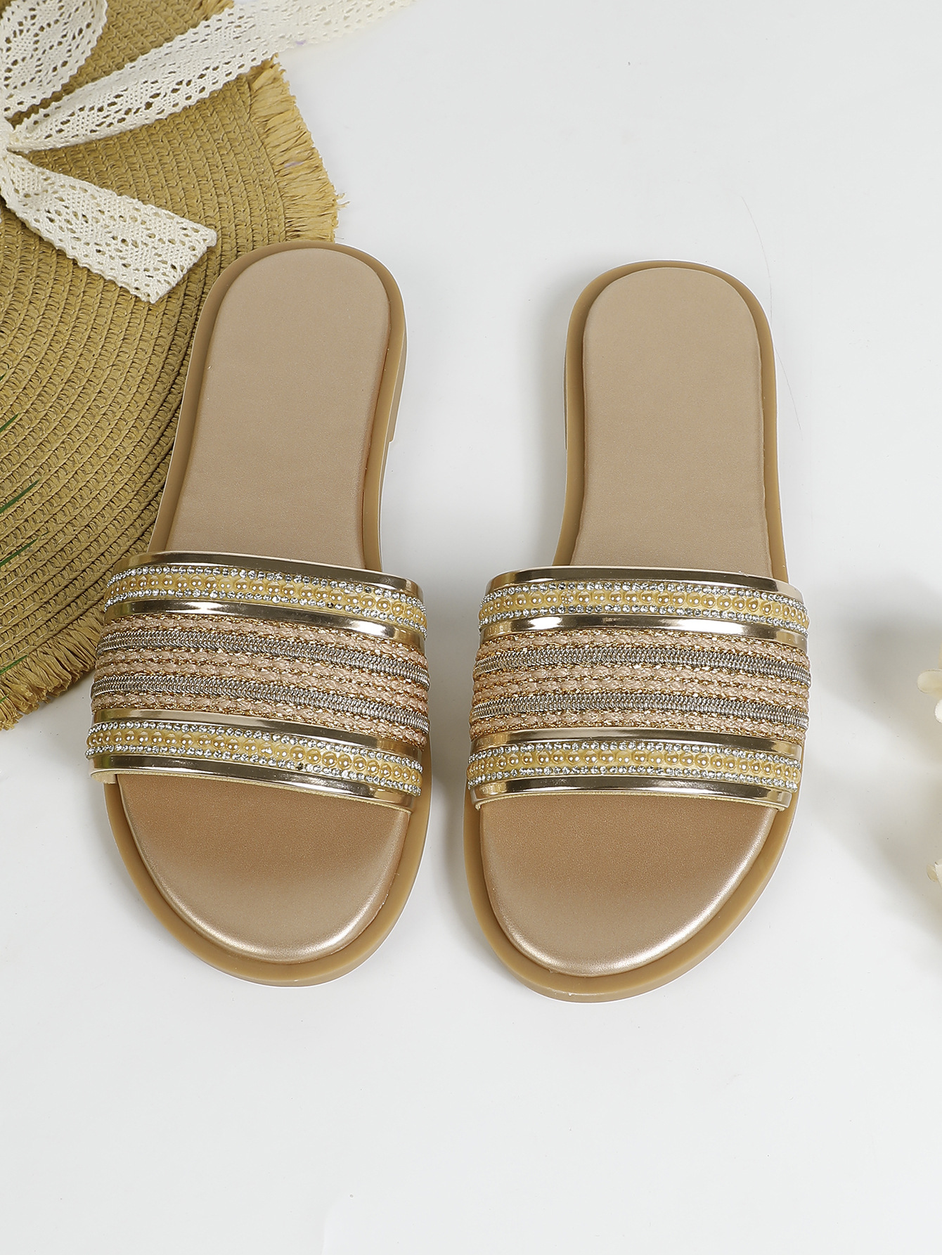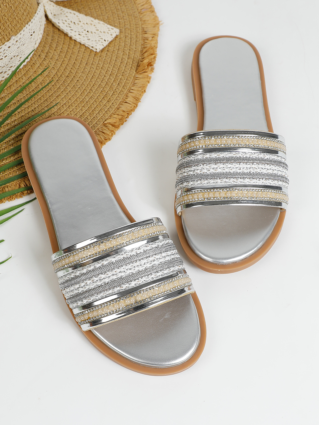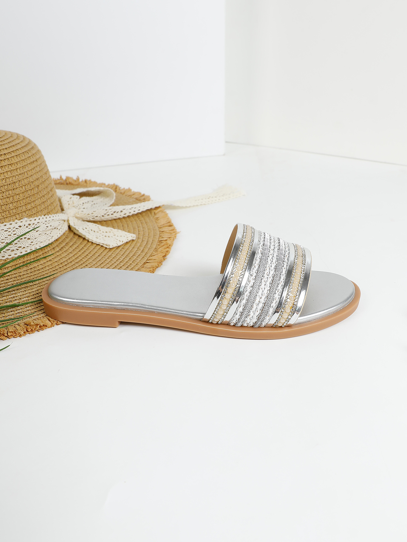 대외 무역용 대형 플랫 바닥 휴가용 비치 슬리퍼 여성용 신발 외출용 2025 여름 레트로 스타일 샌들