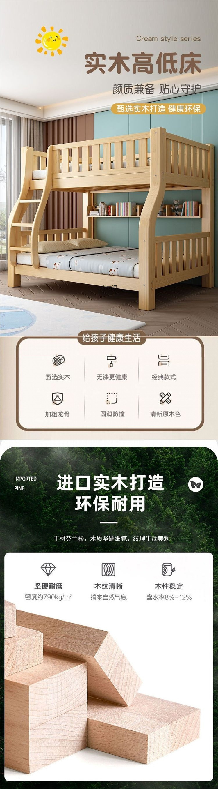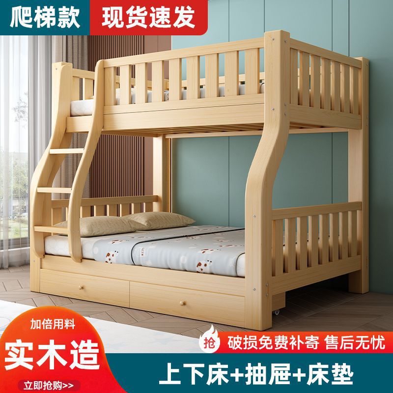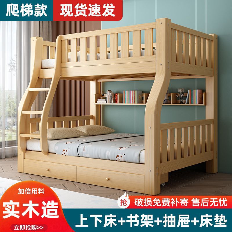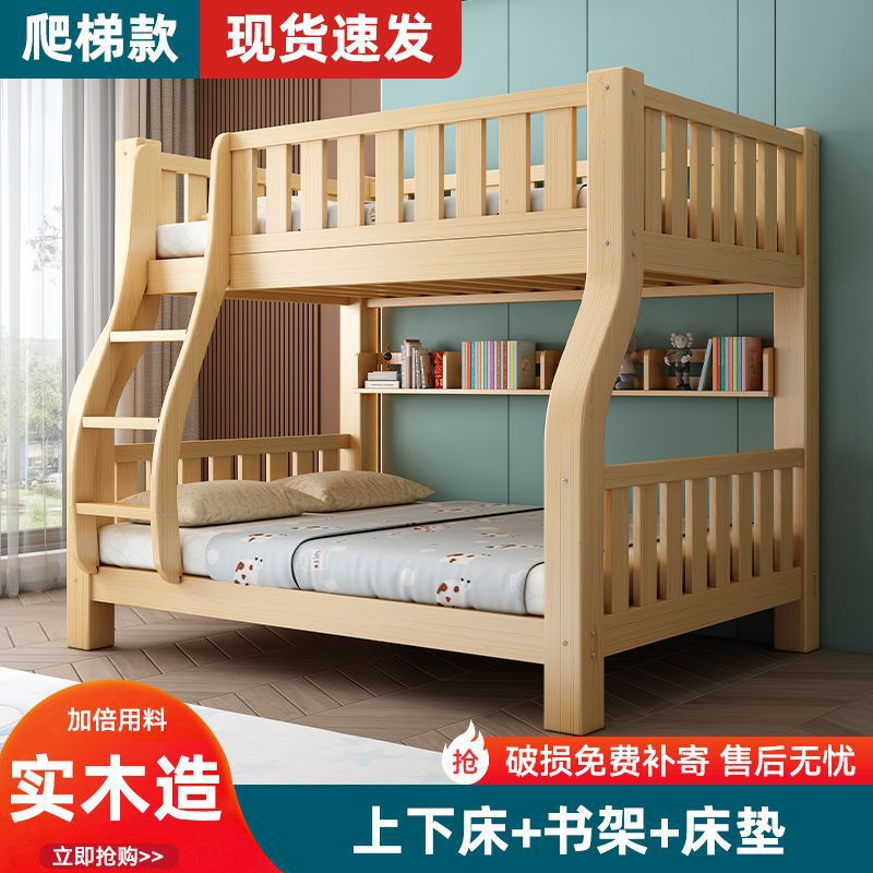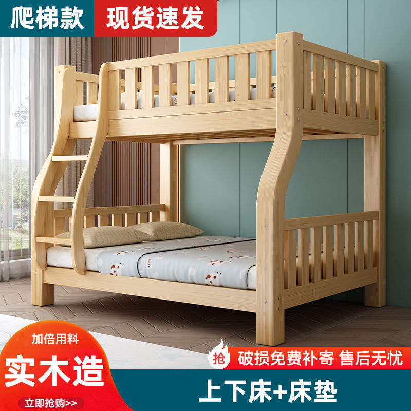 두꺼운 원목 침대, 이층 침대, 2층 기숙사, 소형 다기능 높낮이 침대, 이층 어린이 침대