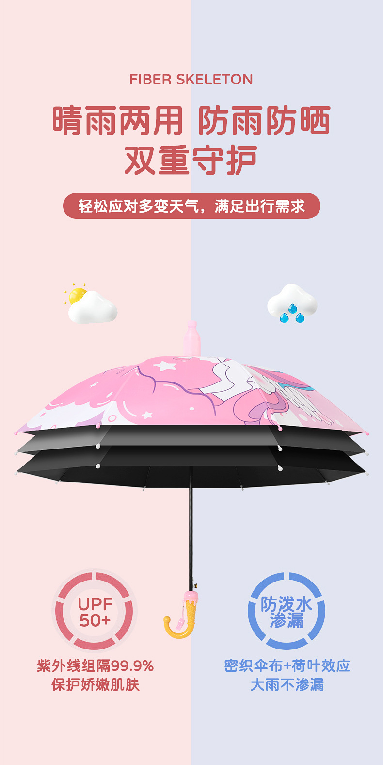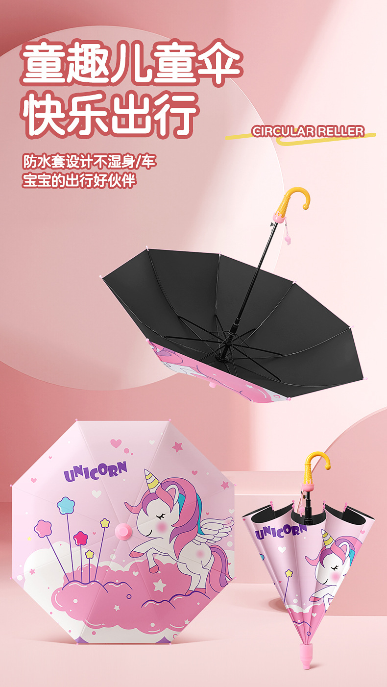 귀여운 만화 어린이 우산 학생 곡선 손잡이 방수 커버 긴 손잡이 우산 비닐 태양 보호 유치원 파라솔 사용자 정의스토어 가기