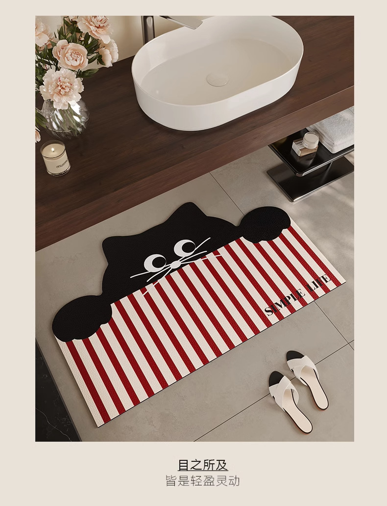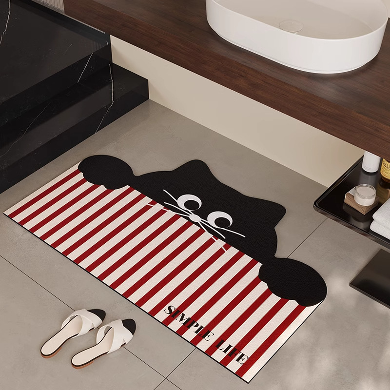 줄무늬 고양이 규조토 진흙 바닥 매트 욕실 욕실 흡수성 미끄럼 방지 속건성 발 매트 입구 문 먼지 방지 먼지 제거 매트스토어 가기