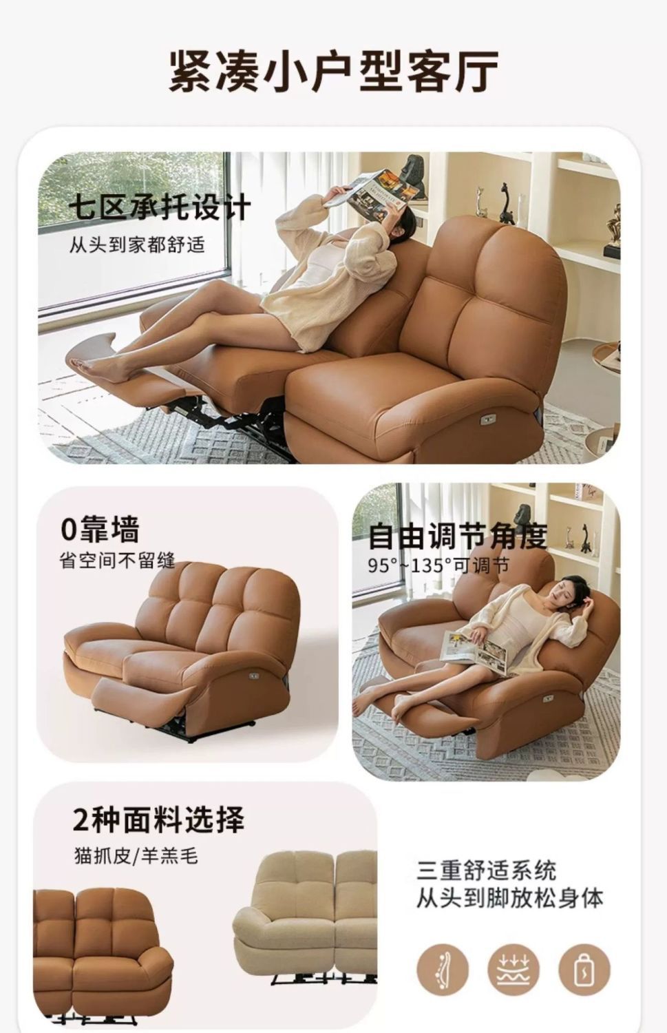 작은 거실을 위한 전기 2인용 다기능 소파 베드, 벽에 조절 가능한 제로, 수면 및 누워서 사용할 수 있는 게으른 소파스토어 가기