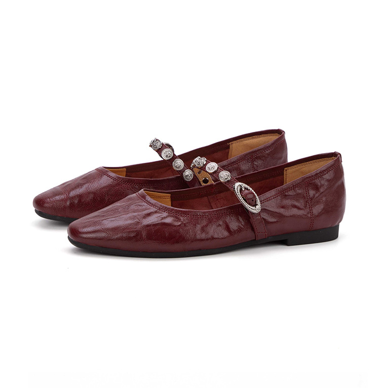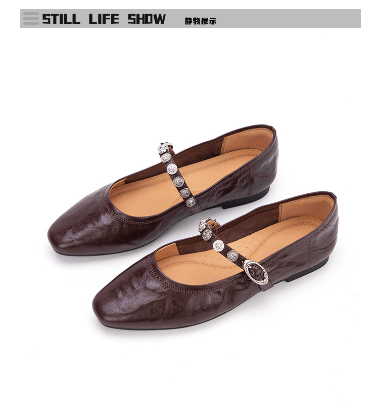 여성용 1층 염소가죽 플랫 솔 스퀘어토 메리제인 슈즈, 레트로 스타일, 출퇴근용, 편안하고 발이 피곤하지 않은 천연가죽 슈즈