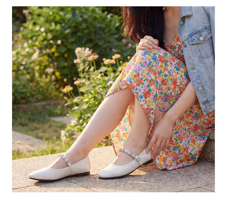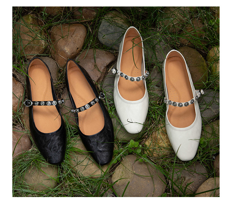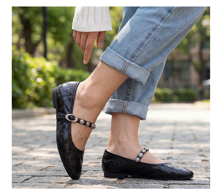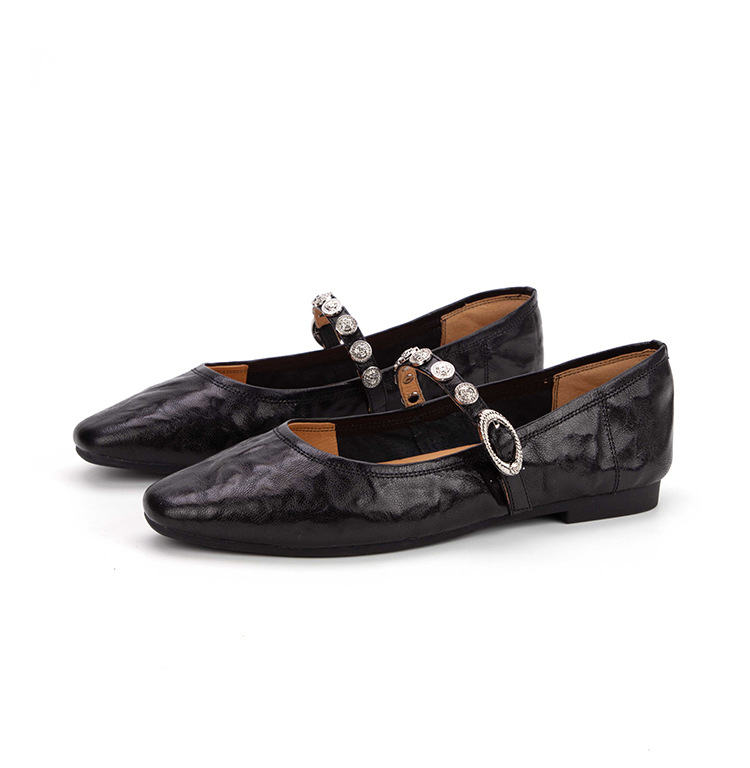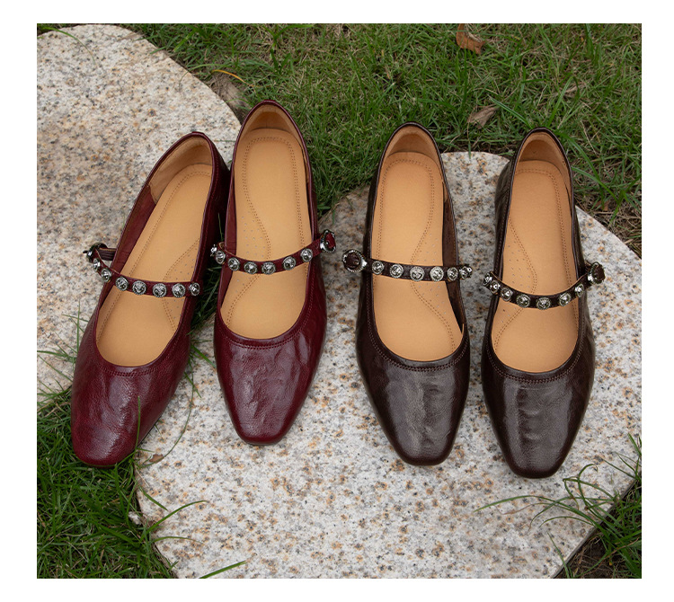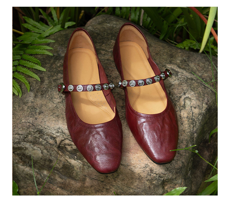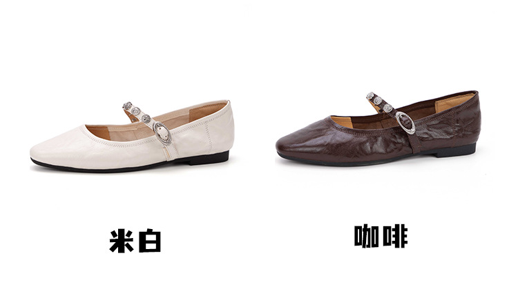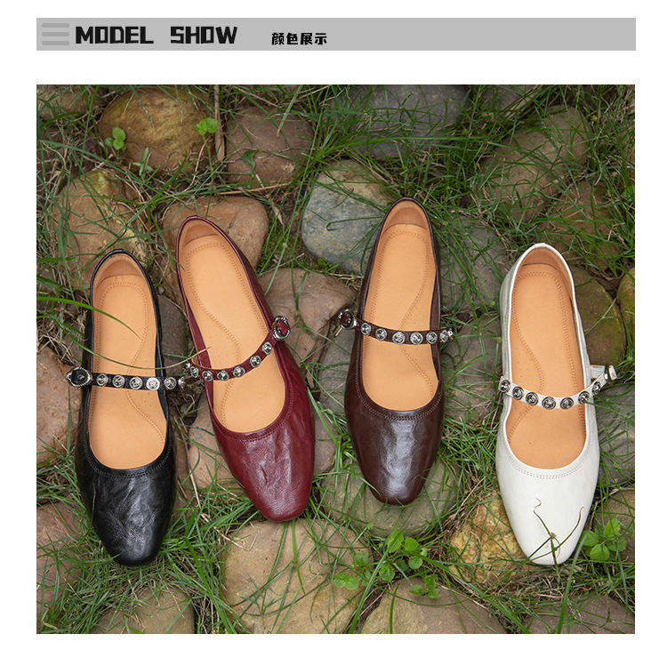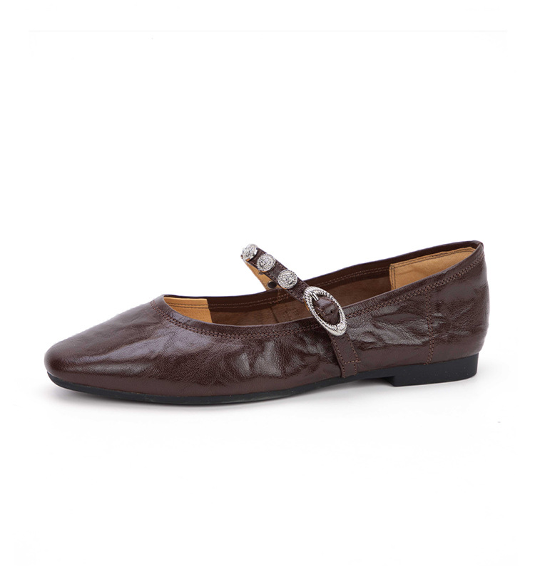 여성용 1층 염소가죽 플랫 솔 스퀘어토 메리제인 슈즈, 레트로 스타일, 출퇴근용, 편안하고 발이 피곤하지 않은 천연가죽 슈즈스토어 가기