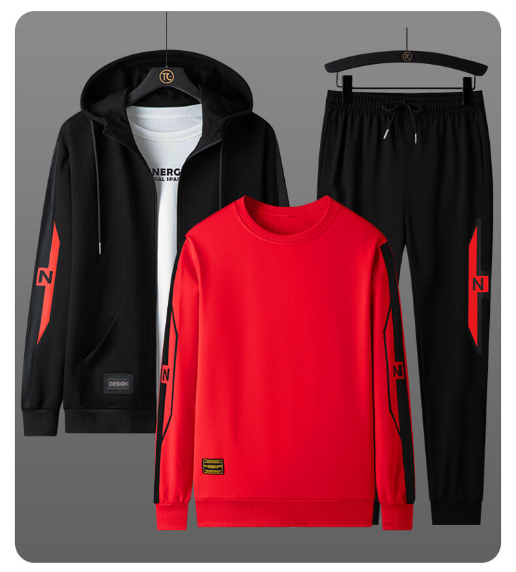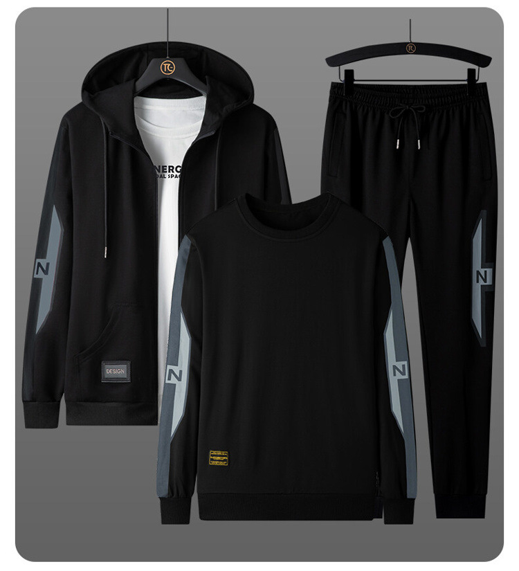 2025 가을 새로운 인기 플러스 사이즈 정장 남성 가을, 겨울 남성 스포츠 정장 3 피스 세트 느슨한 라운드 넥 스웨트 셔츠와 바지