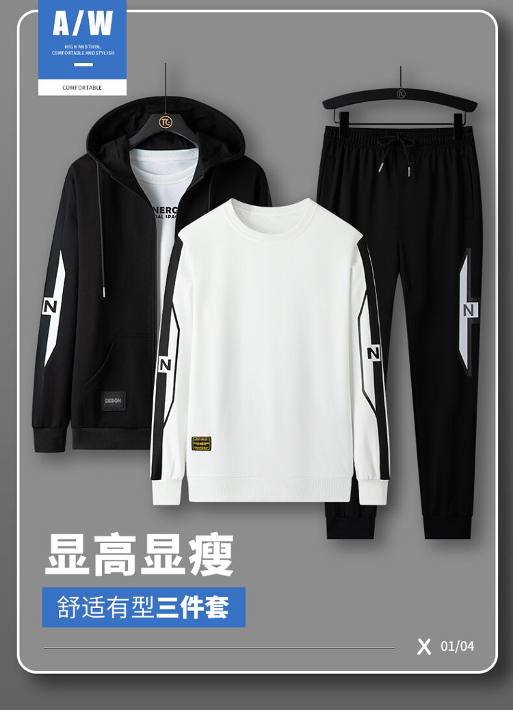 2025 가을 새로운 인기 플러스 사이즈 정장 남성 가을, 겨울 남성 스포츠 정장 3 피스 세트 느슨한 라운드 넥 스웨트 셔츠와 바지스토어 가기
