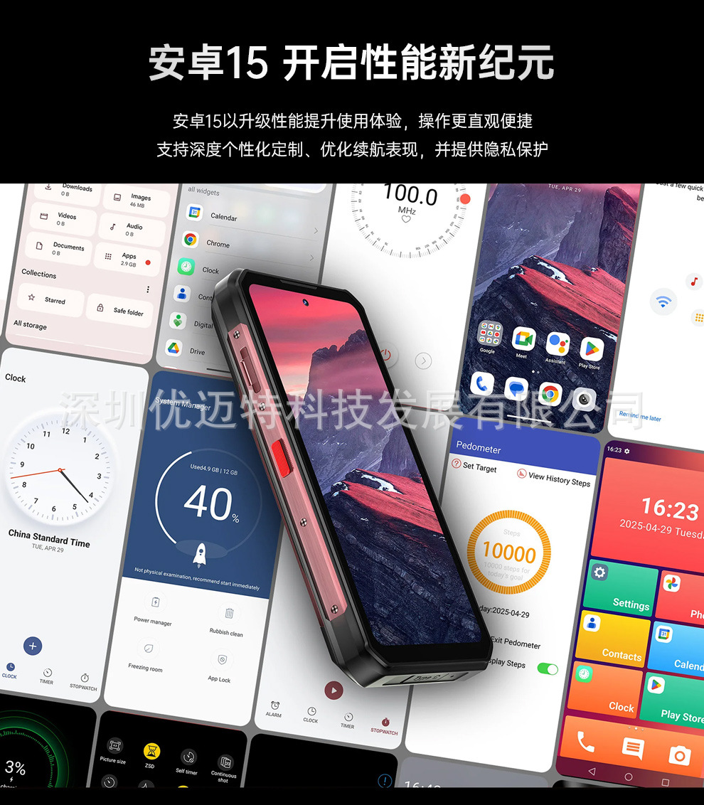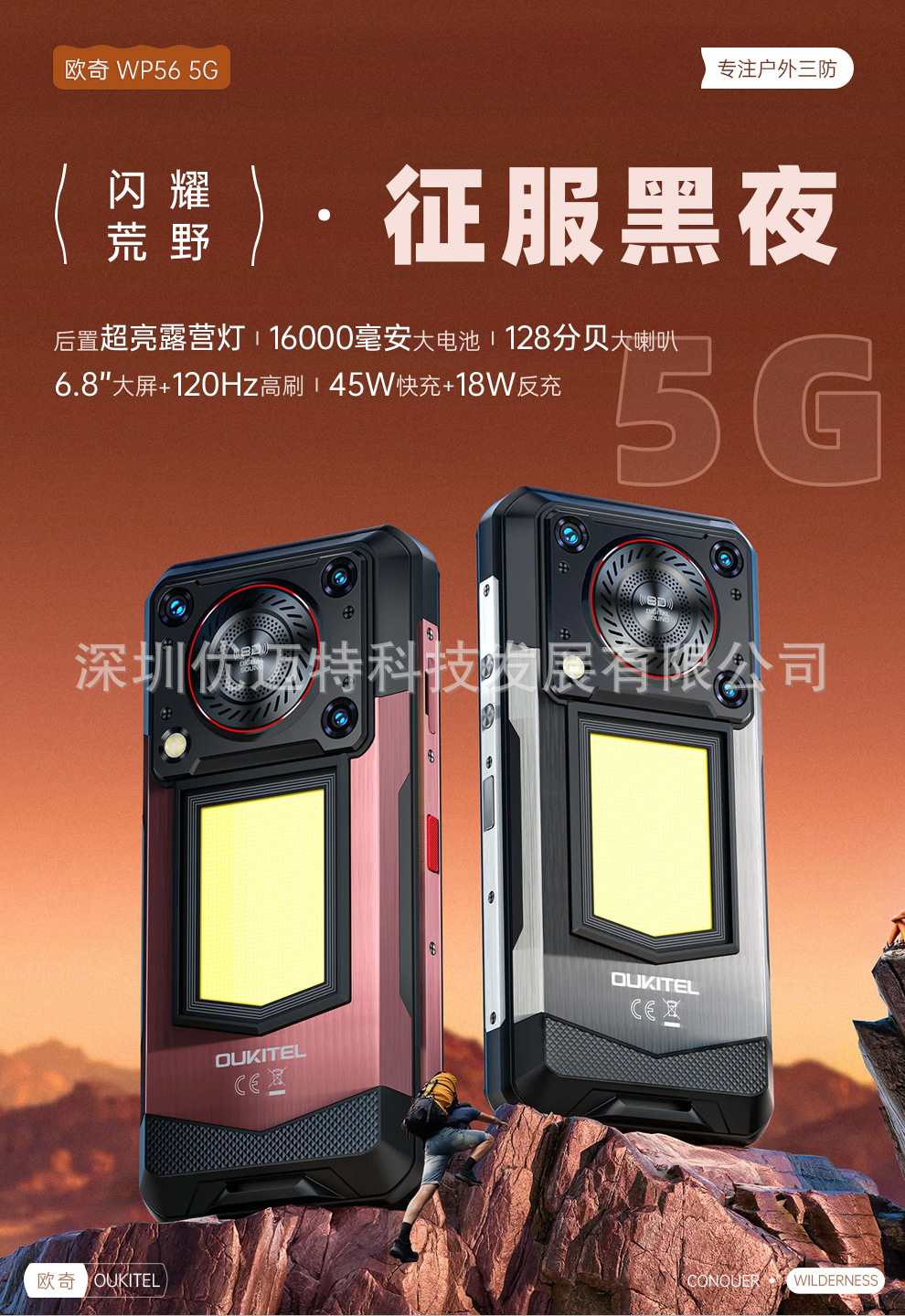 Ouqi WP56 5G 견고한 휴대폰 6.8inch 16000mAh 대형 배터리 12GB+512 안드로이드 15스토어 가기