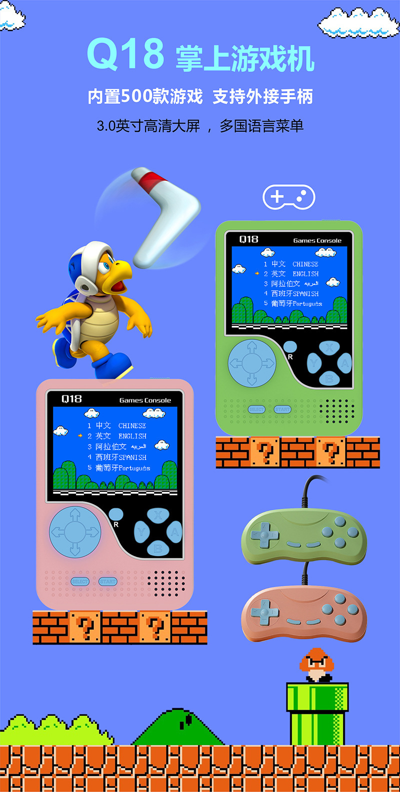 국경 간 새로운 휴대용 게임 콘솔 클래식 500-in-1 단일 어린 시절 향수 대형 스크린 휴대용 게임 콘솔스토어 가기