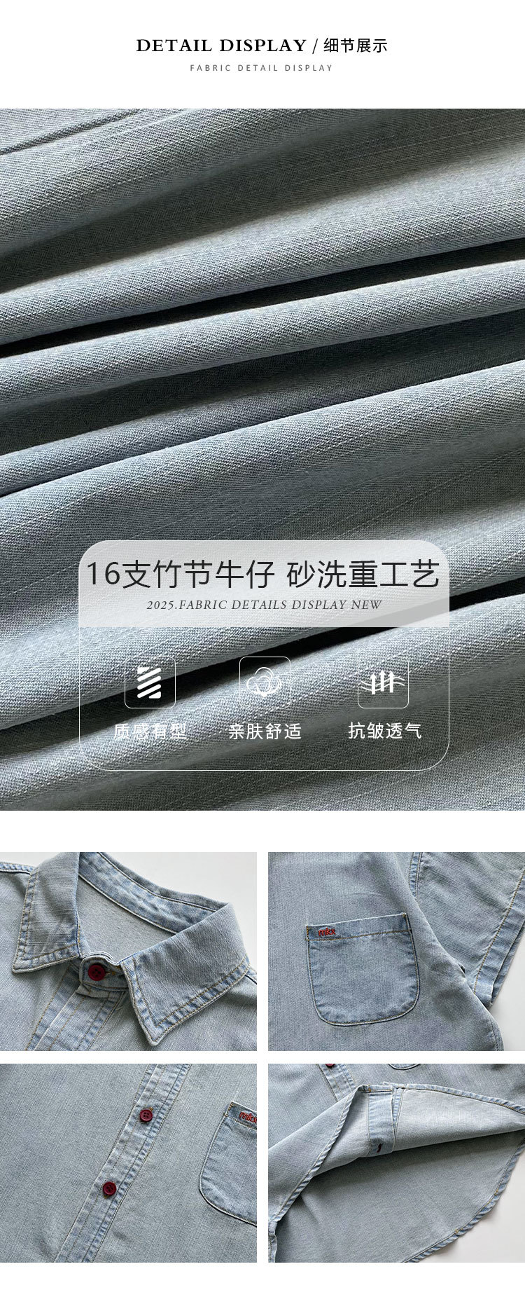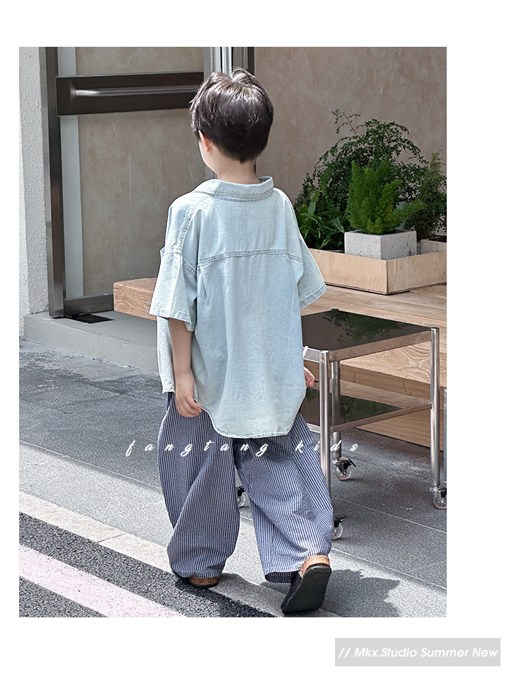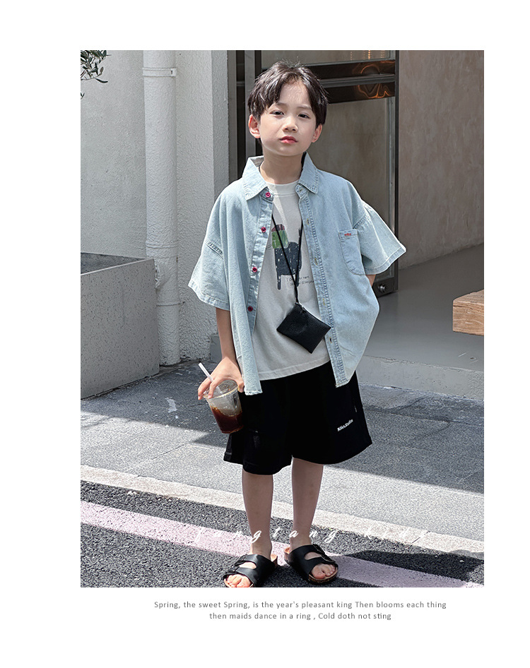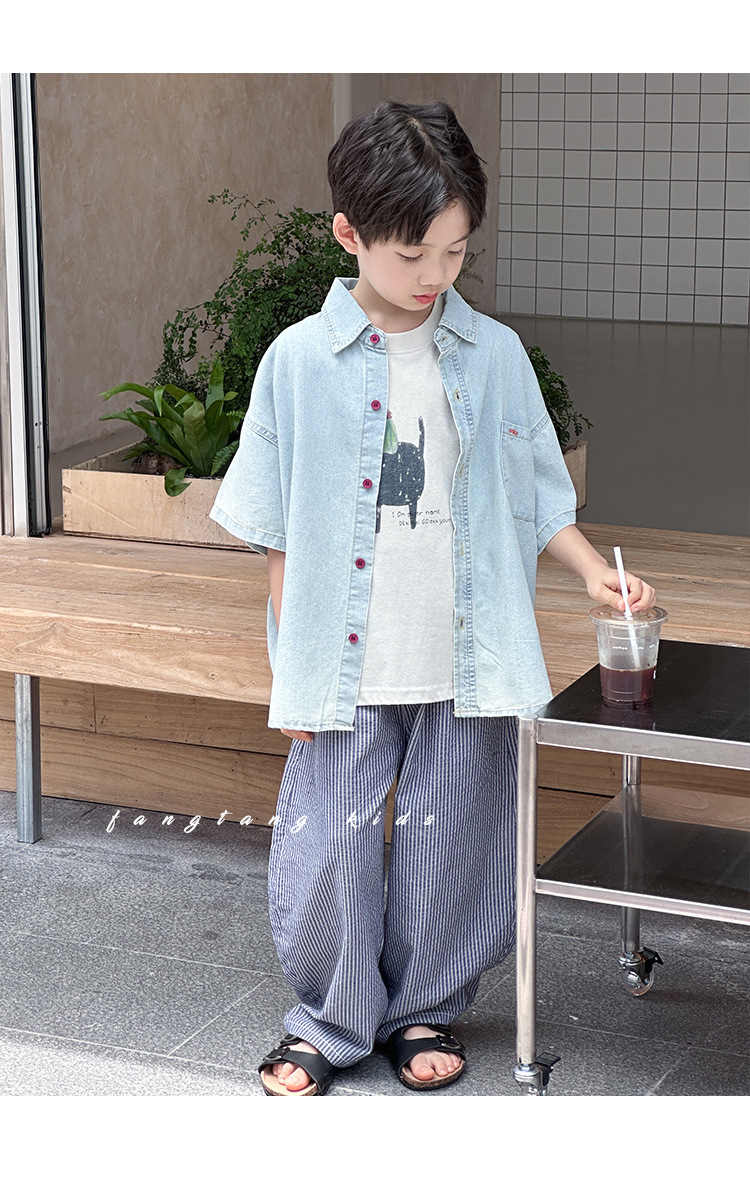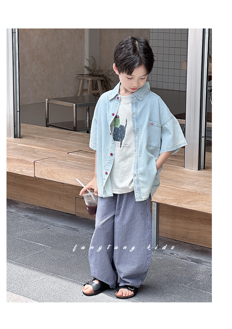 아동 여름 의류 소년 반팔 데님 셔츠 2025 여름 새로운 스타일 중대형 어린이 경량 통기성 캐주얼 셔츠스토어 가기
