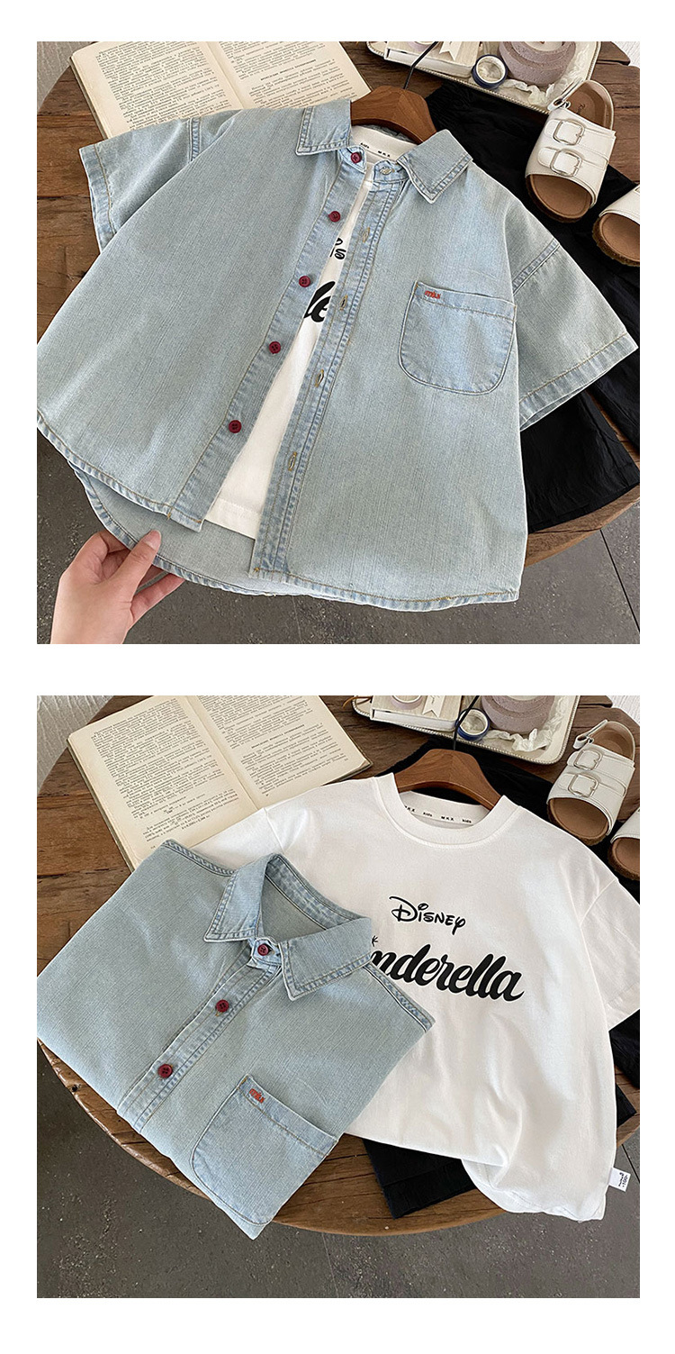 아동 여름 의류 소년 반팔 데님 셔츠 2025 여름 새로운 스타일 중대형 어린이 경량 통기성 캐주얼 셔츠