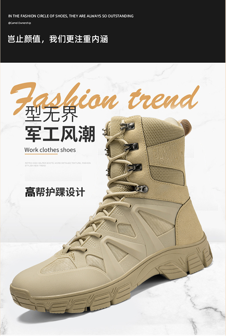 2025 새로운 사막 부츠 남자 야외 방풍 및 모래 방지 위장 작업 부츠 등산 전투 마틴 부츠 중간 등산스토어 가기