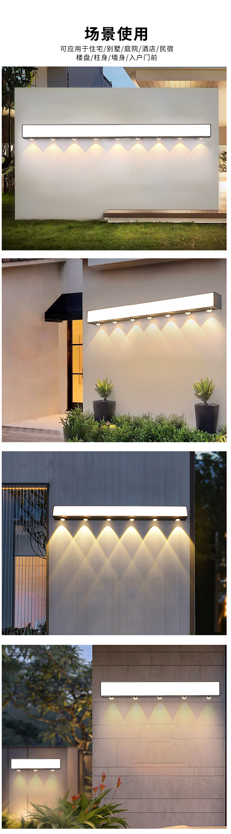 야외 전원 연결 방수 벽등 분위기 조명 정원등 통로 발코니 울타리 빌라 정원 긴 조명등 산 벽면 조명등