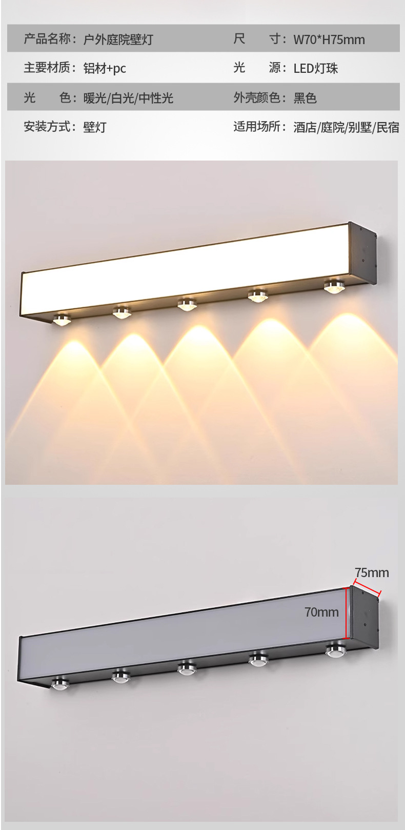 야외 전원 연결 방수 벽등 분위기 조명 정원등 통로 발코니 울타리 빌라 정원 긴 조명등 산 벽면 조명등스토어 가기