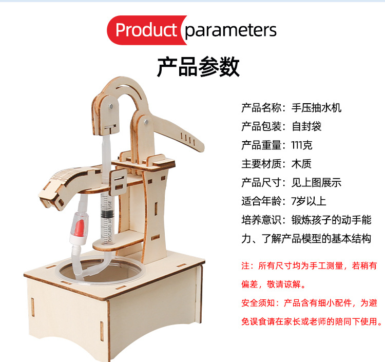 DIY 과학 실험 DIY 손으로 누르는 펌프 수동 압력 우물 기술 소규모 생산 어린이 수공예품스토어 가기