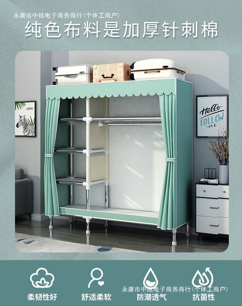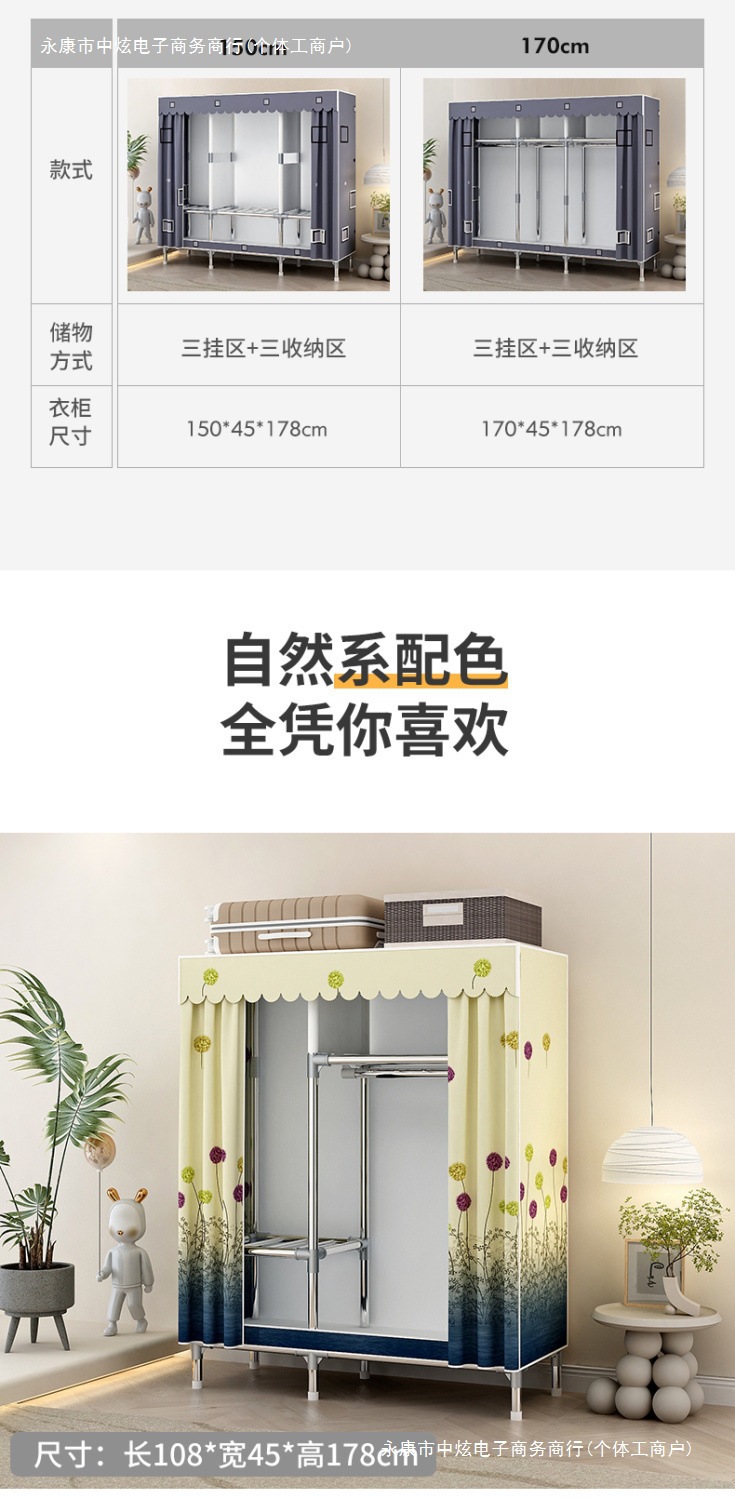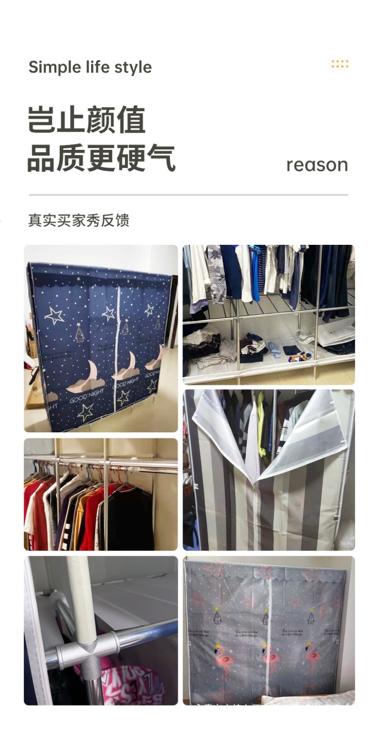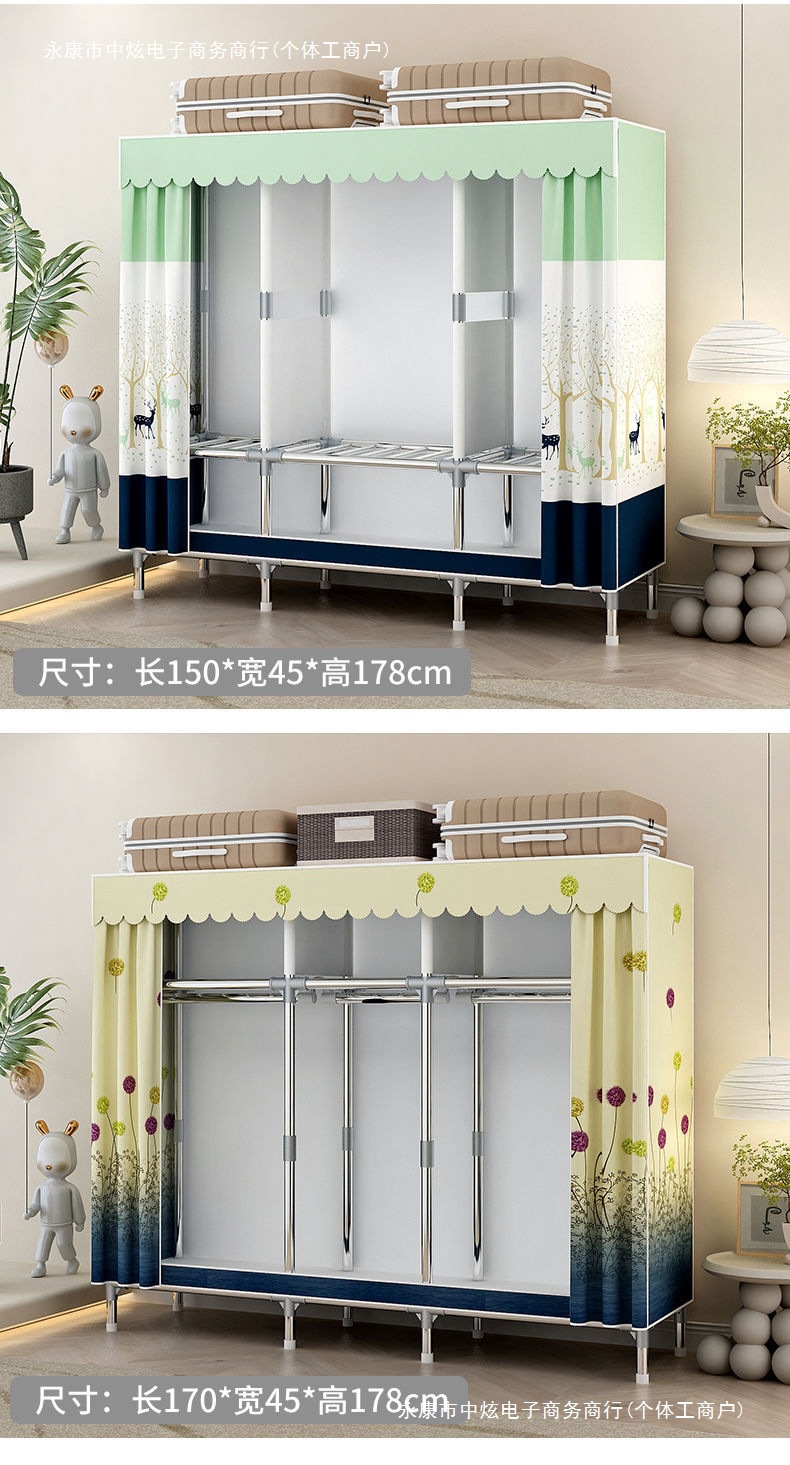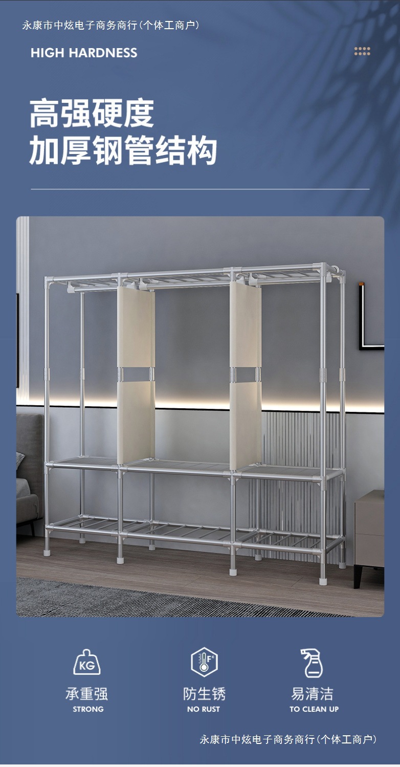간단한 옷장 홈 침실 조립 천 옷장 임대실 보관 전체 강철 프레임 두꺼운 바닥 옷장 선반스토어 가기