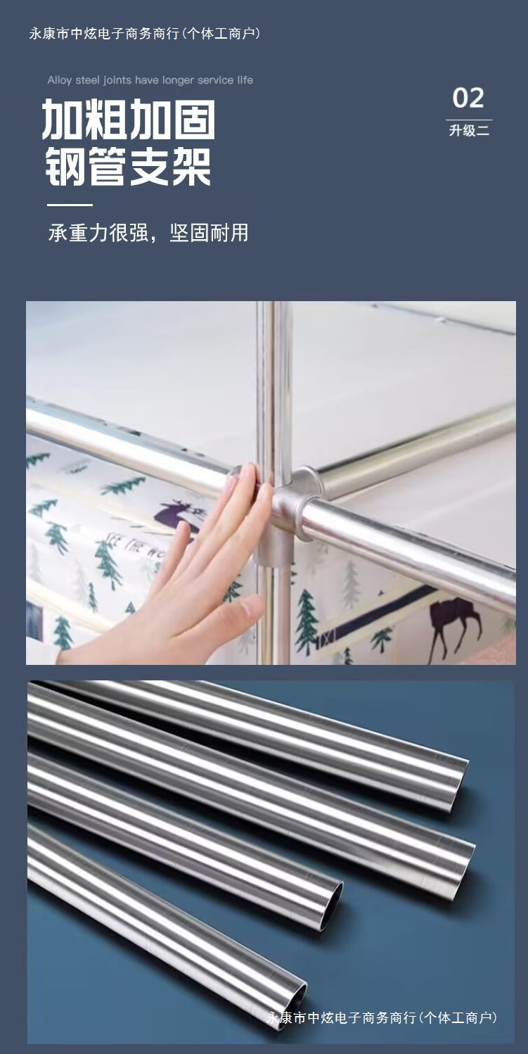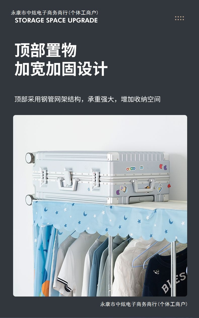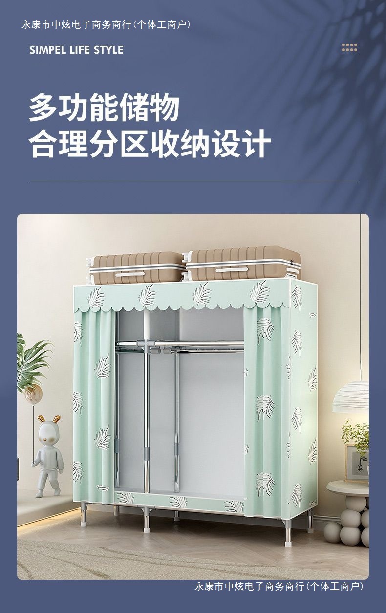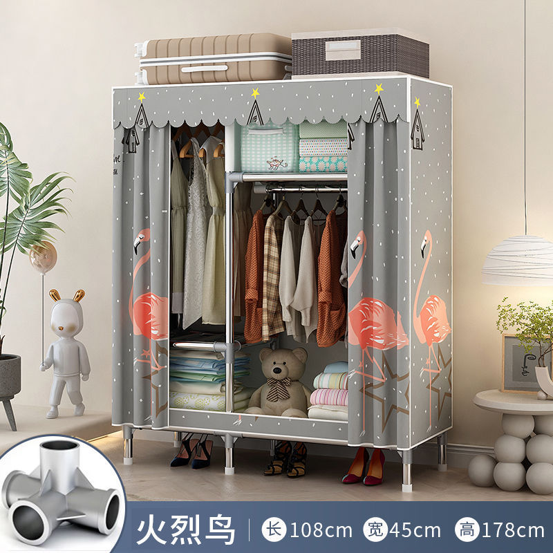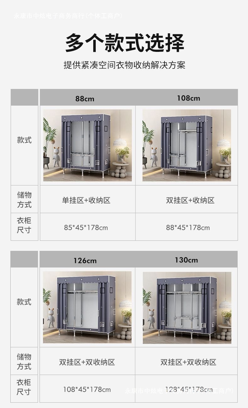 간단한 옷장 홈 침실 조립 천 옷장 임대실 보관 전체 강철 프레임 두꺼운 바닥 옷장 선반스토어 가기