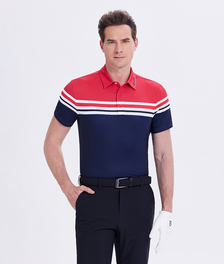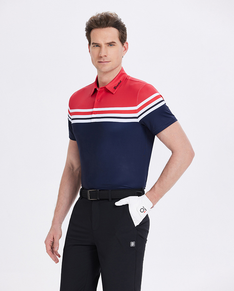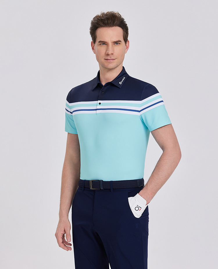 DB 남성용 골프 반팔 폴로 셔츠 흡습 속건 땀 흡수 라펠 스트라이프 저지 야외 스포츠