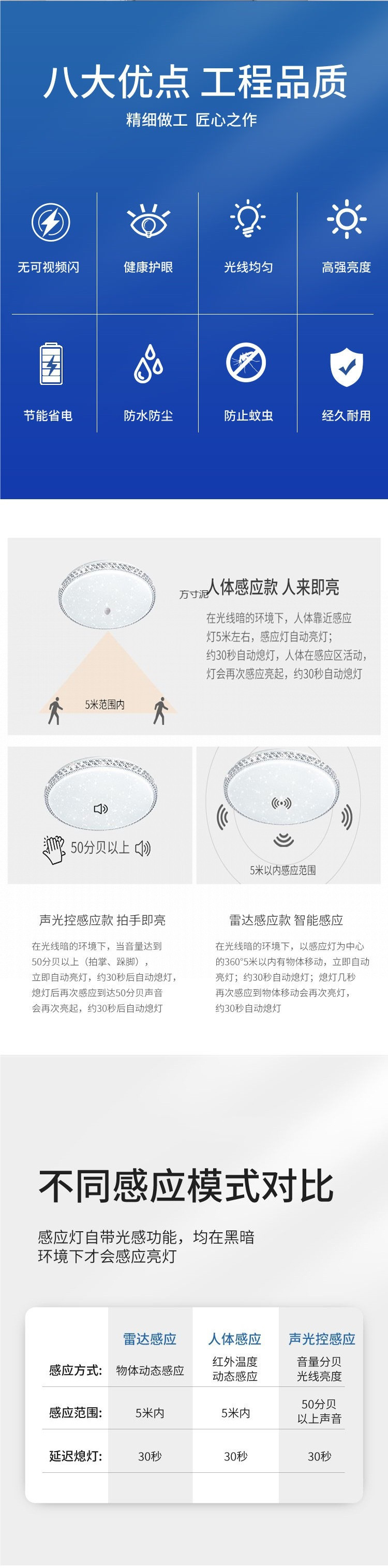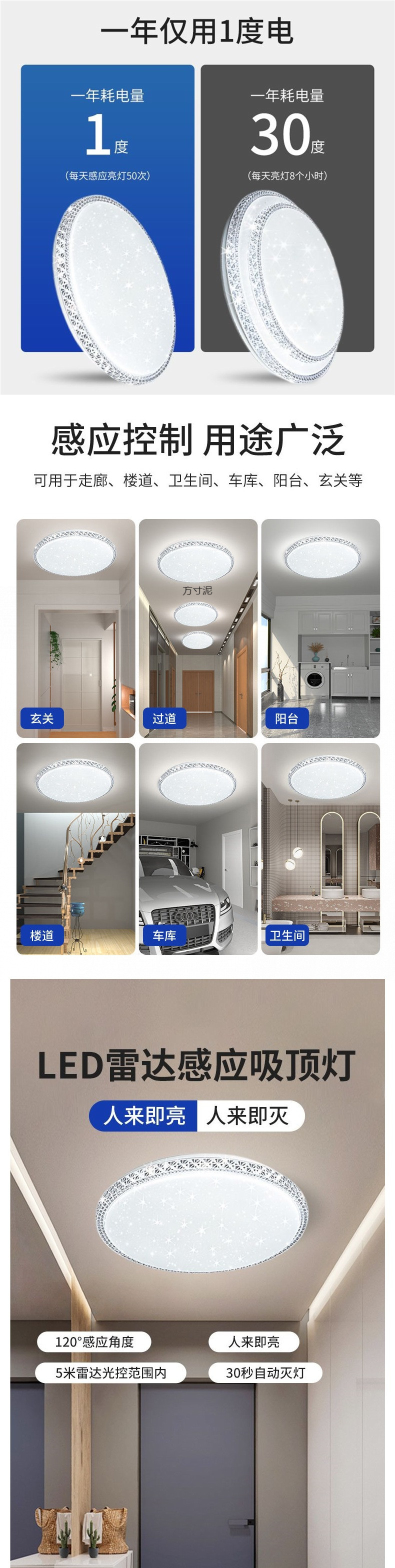새로운 LED 천장 조명 복도 통로 천장 조명 레이더 조명 음성 제어 적외선 인체 센서 조명 계단 공장