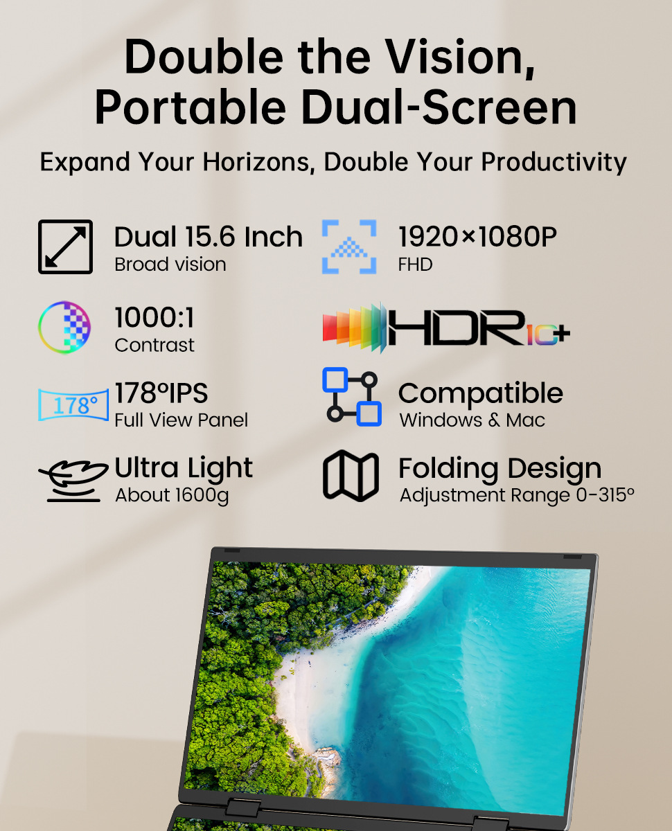 15.6inch 듀얼 스크린 휴대용 모니터 1080P 외부 화면 노트북 사무실 게임용 LCD 화면