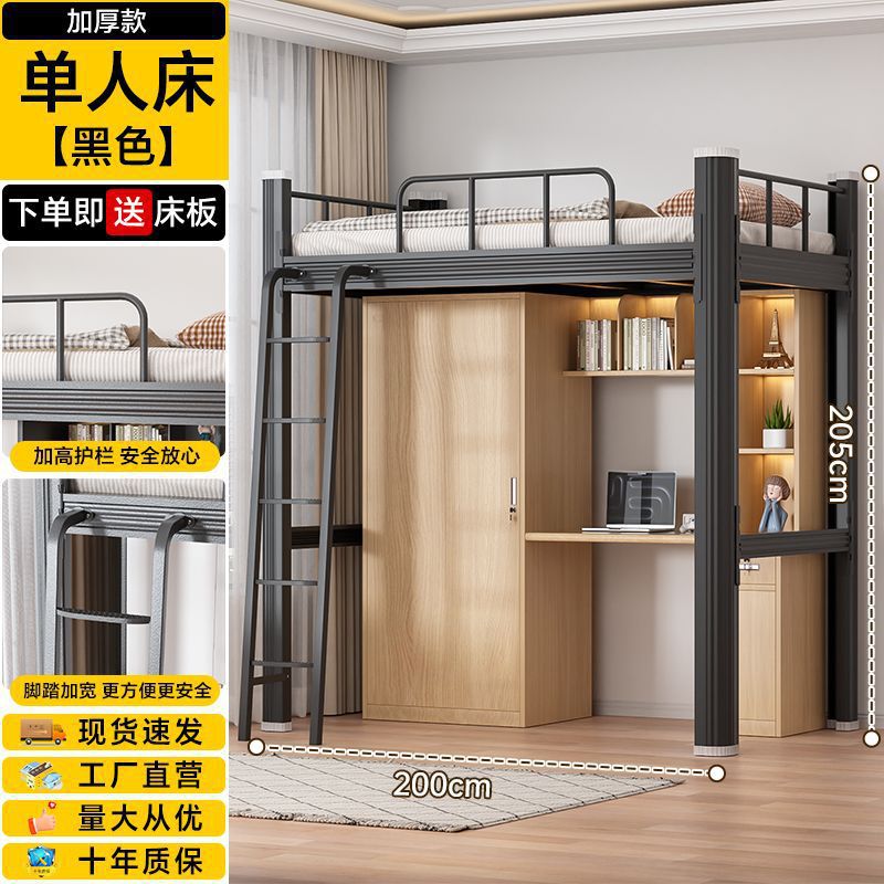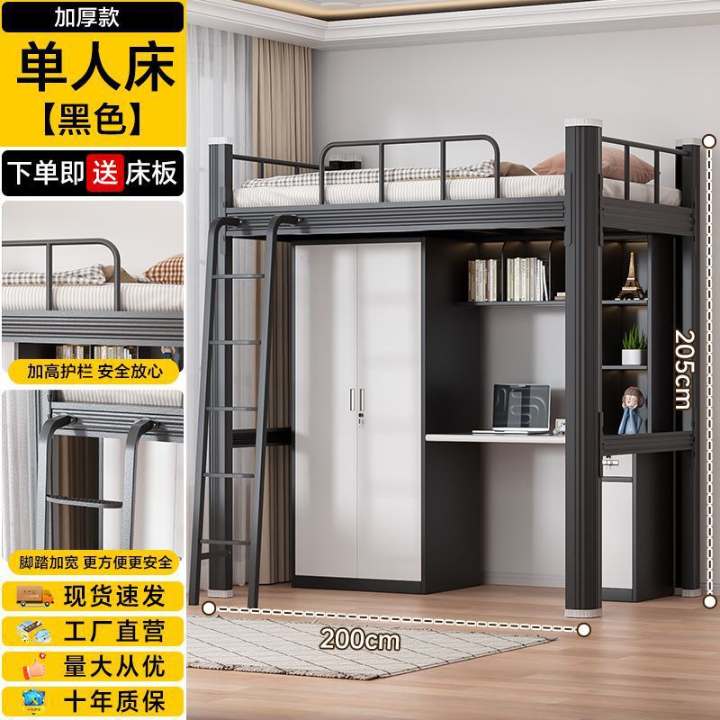 대학생 기숙사 이층침대와 테이블 조합 침대 성인용 가정용 침대 아파트 철제 침대 소형 아파트 높낮이 침대