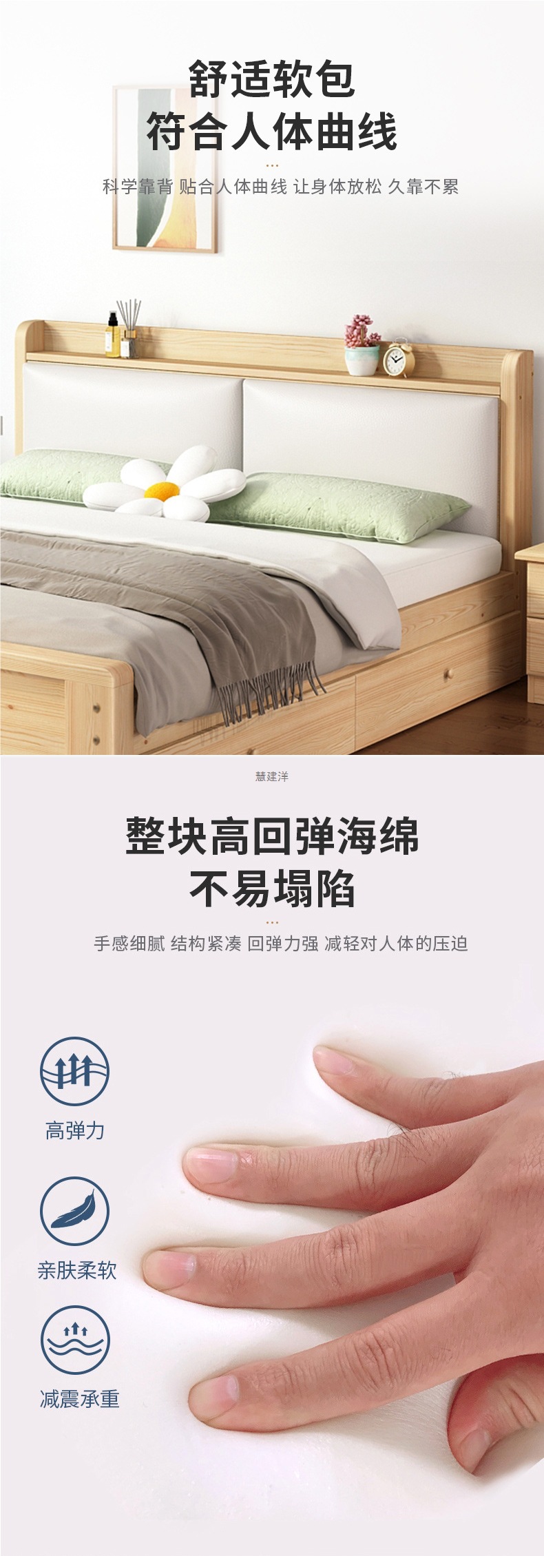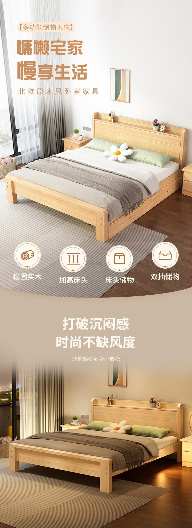 • [모델 A는 모두 원목입니다.] 광택 침대 + 이중 서랍. 준비된 재고의 빠른 배송