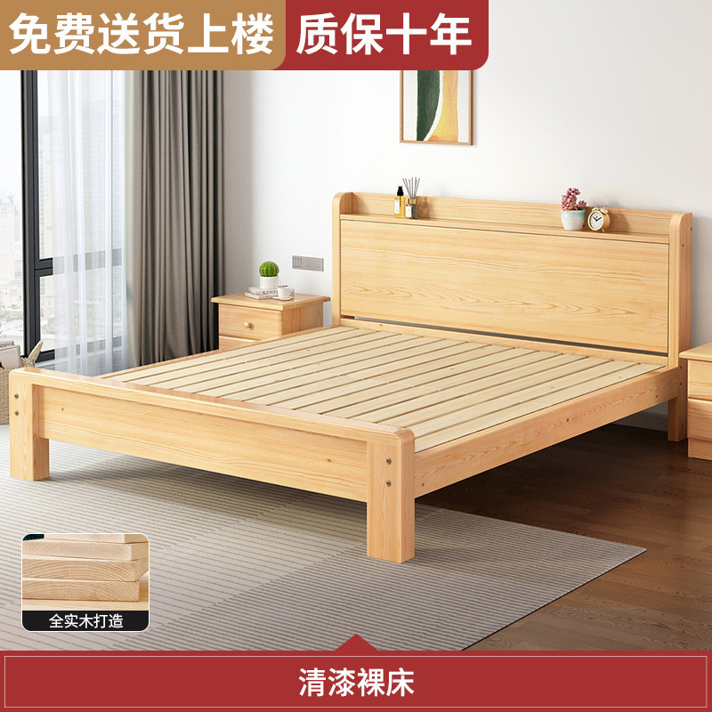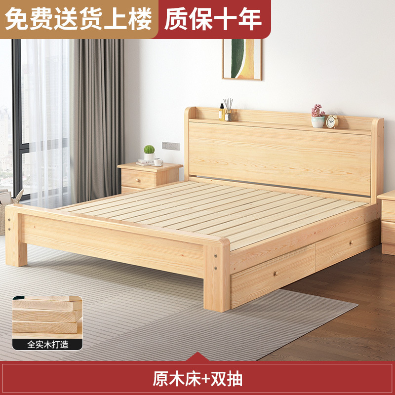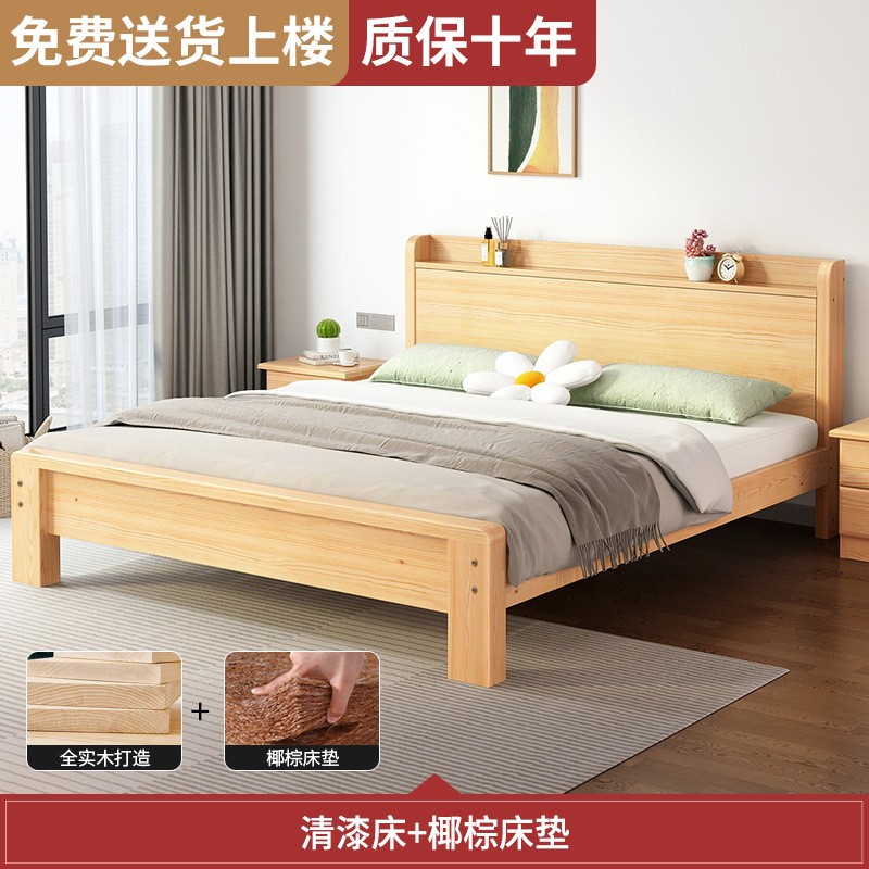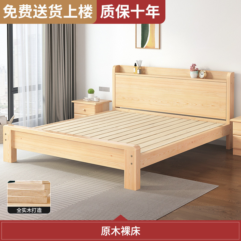 원목 침대 모던 심플 1.8m 더블 침대 홈 마스터 침실 1.5 싱글 침대 심플 순수 원목 경제형스토어 가기