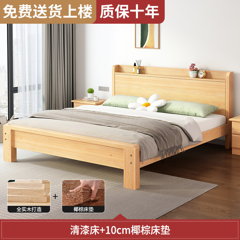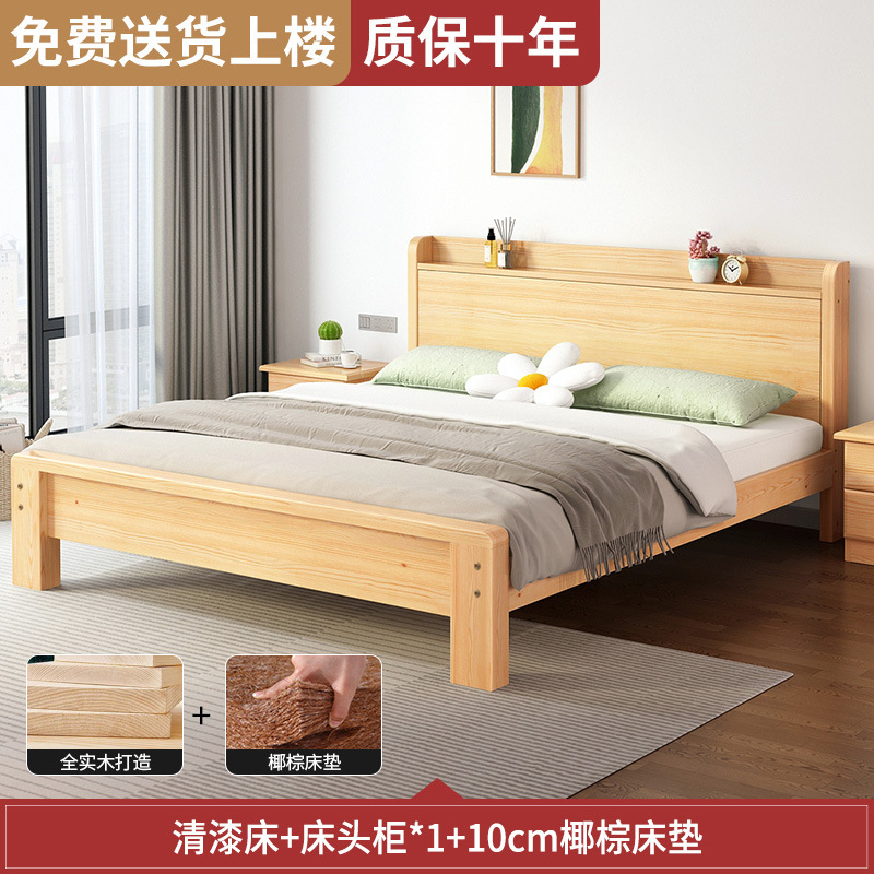 • [모델 A, 모두 원목] 광택 침대 + 침대 옆 탁자 * 1 + 10CM 코코넛 야자 매트, 배송 준비 완료