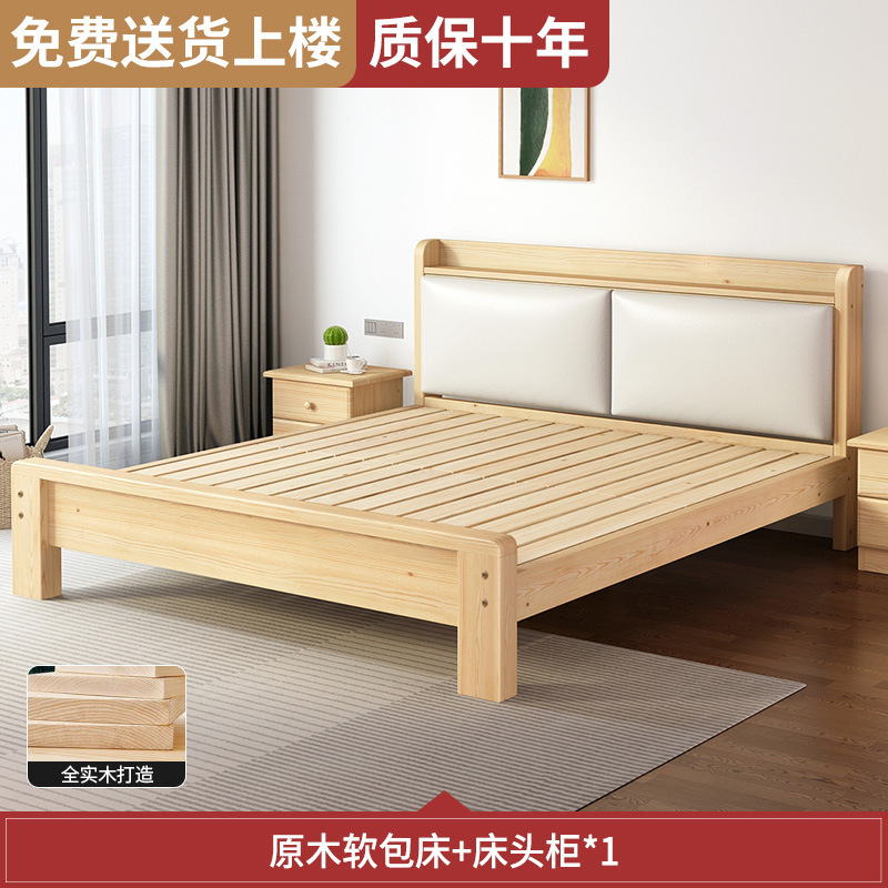 원목 침대 모던 심플 1.8m 더블 침대 홈 마스터 침실 1.5 싱글 침대 심플 순수 원목 경제형