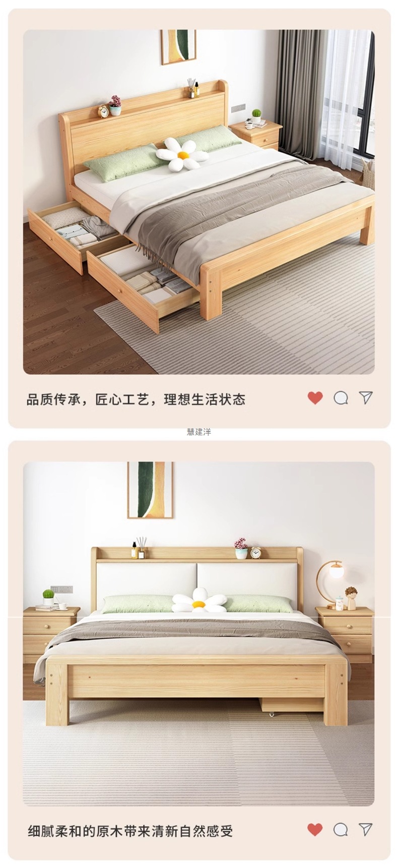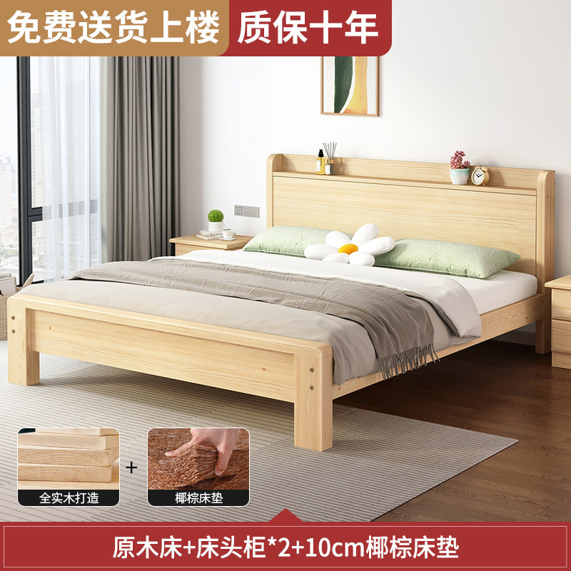 • [모델 A는 모두 원목입니다] 광택 침대 + 침대 옆 탁자 * 2 + 10CM 코코넛 야자 매트 배송 준비 완료