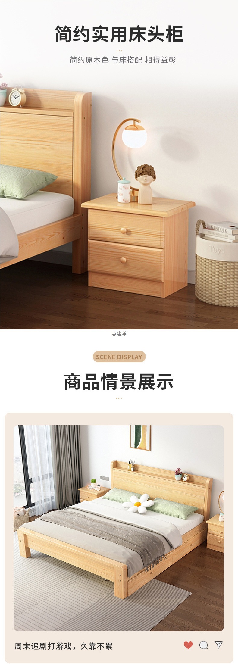 • [모델 A, 모두 원목] 부드러운 포장된 목재 색상 + 침대 옆 탁자 * 2 + 10CM 코코넛 야자 매트, 배송 준비 완료