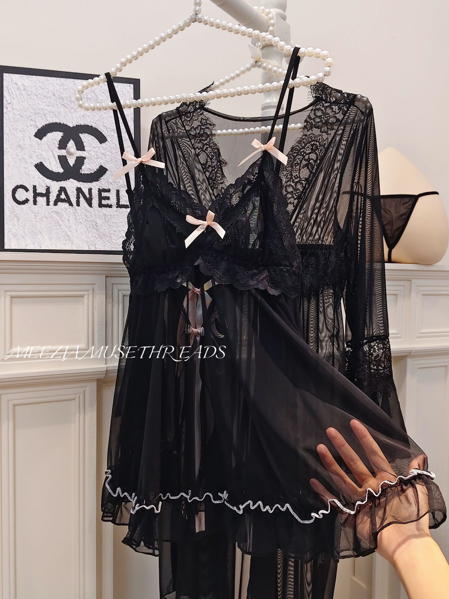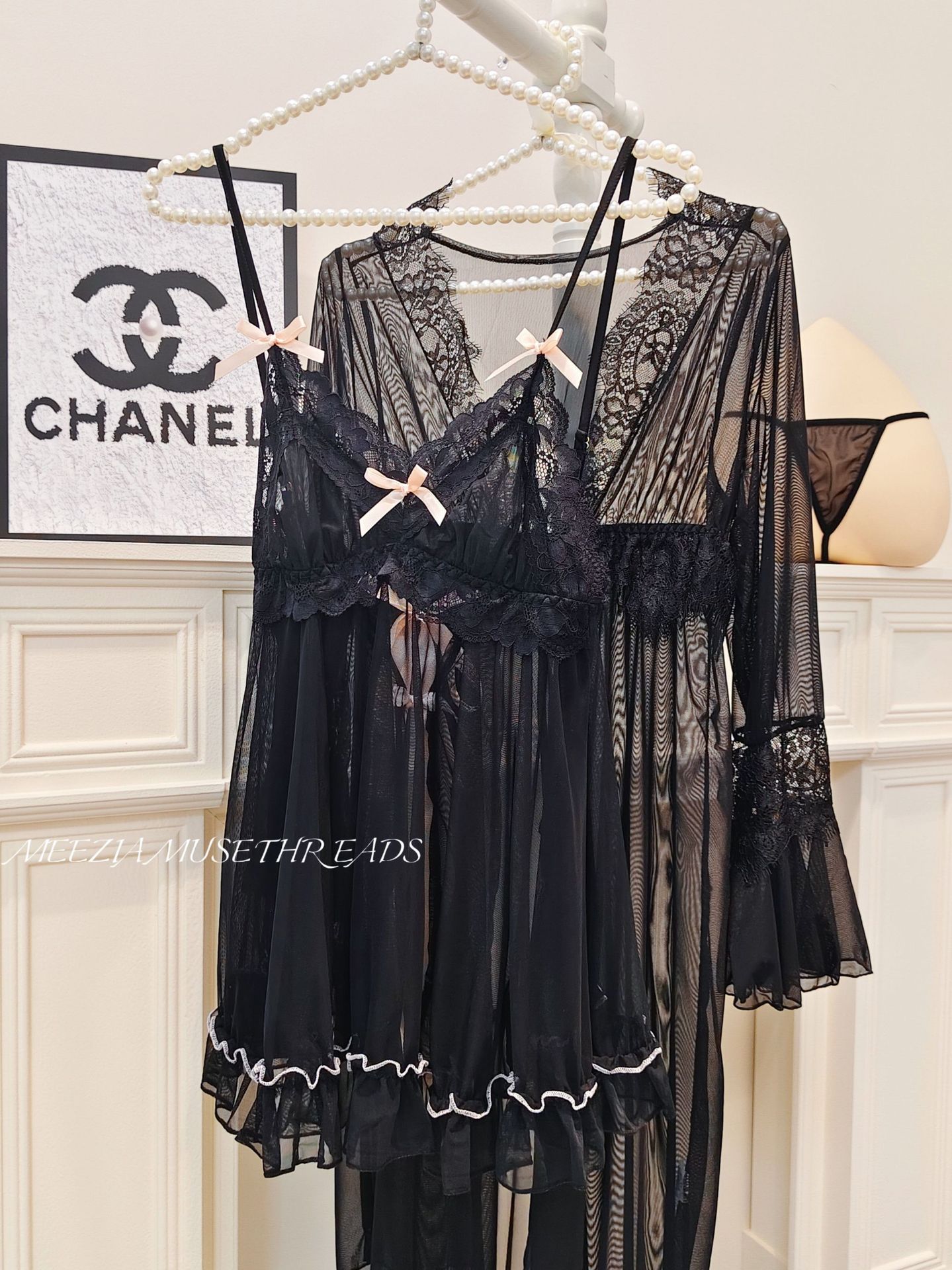 • 블랙(잠옷+끈팬티+겉옷)