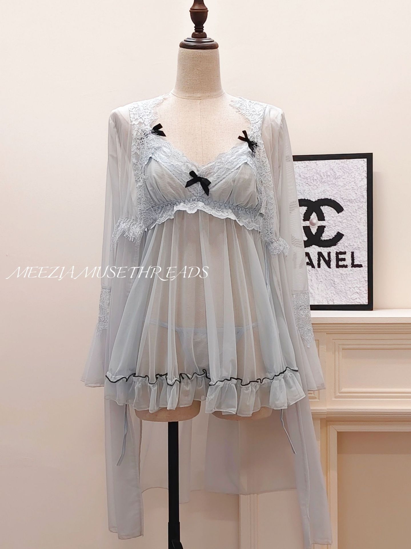 • 아쿠아블루(잠옷+끈팬티+가운)